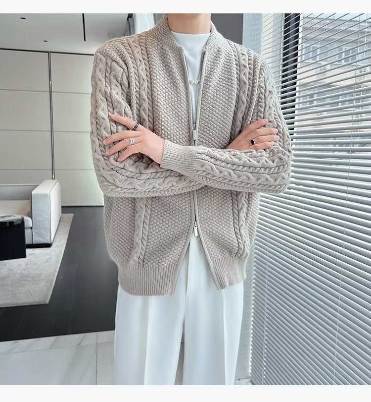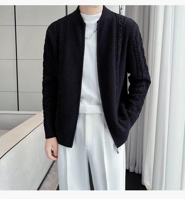 Title: Men’s Zipper Cardigan with Long Sleeves and Loose Fit