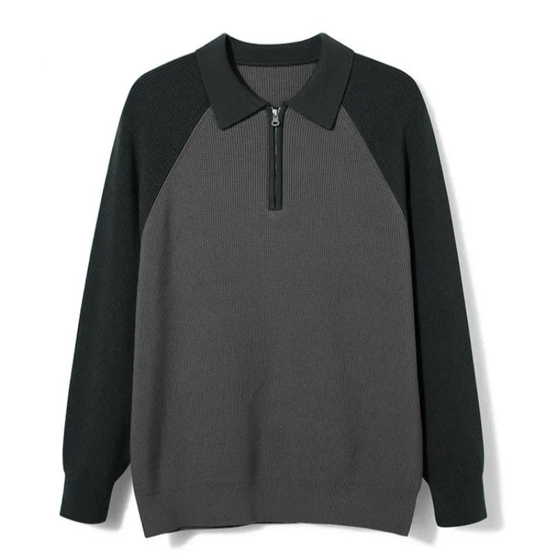 Men Business Zip-Up Sweater With Polo Collar And Raglan Sleeves