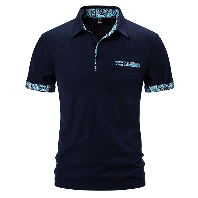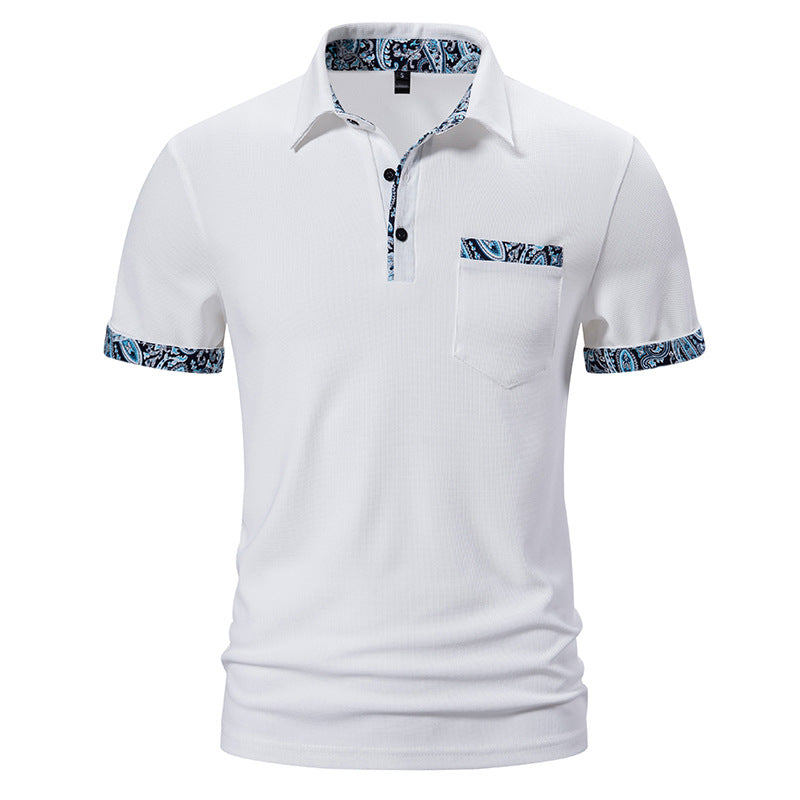 Men's Summer Short Sleeve T-Shirt Lapel Collar Paisley Pattern Regular Fit