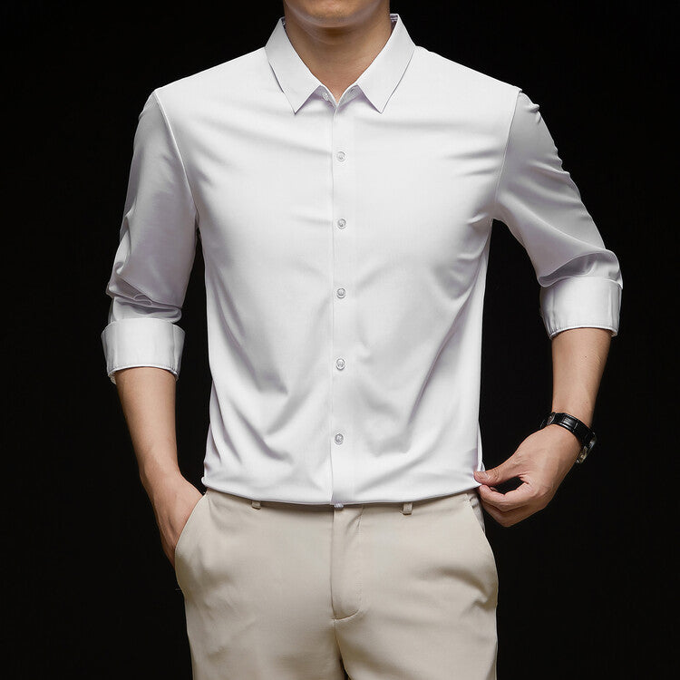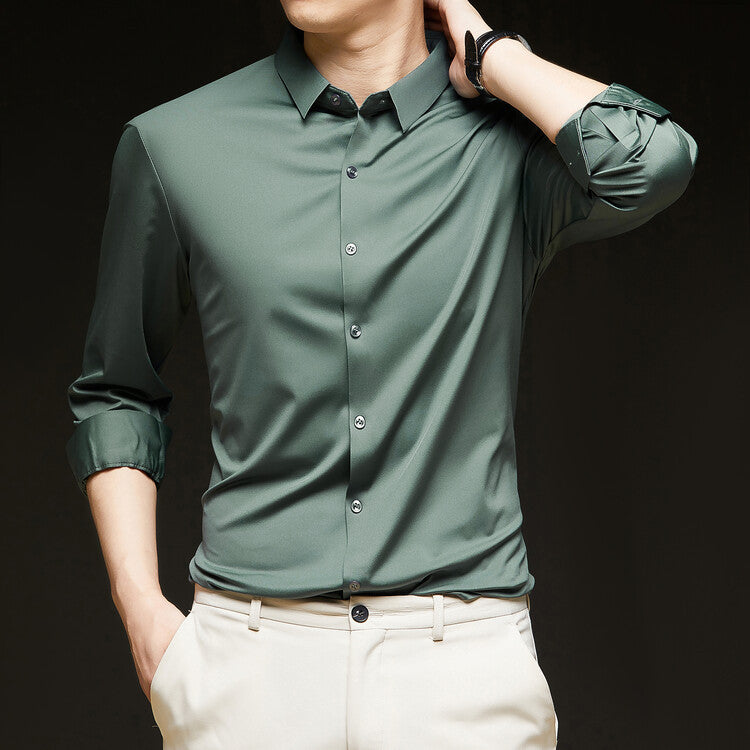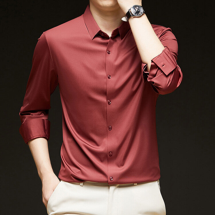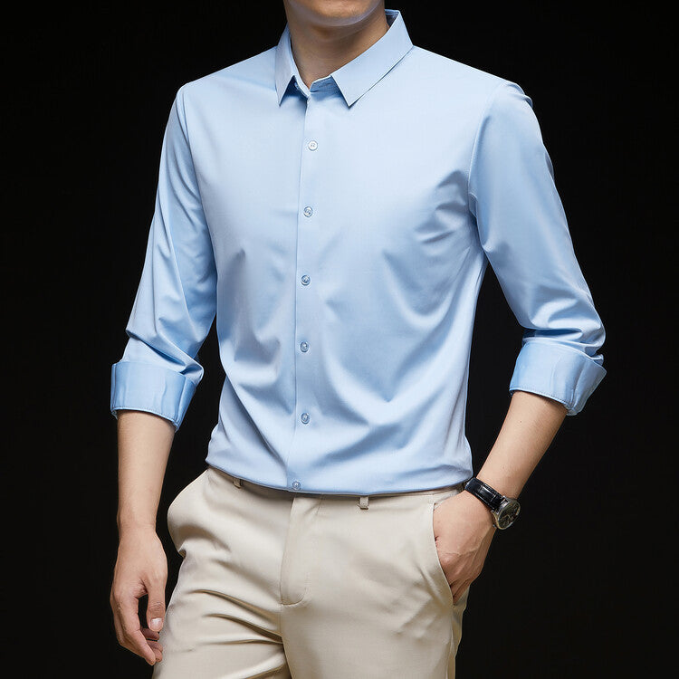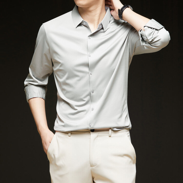 Men’s Autumn Slim Fit Long Sleeve Button-Up Shirt Lightweight Fabric Multiple Colors