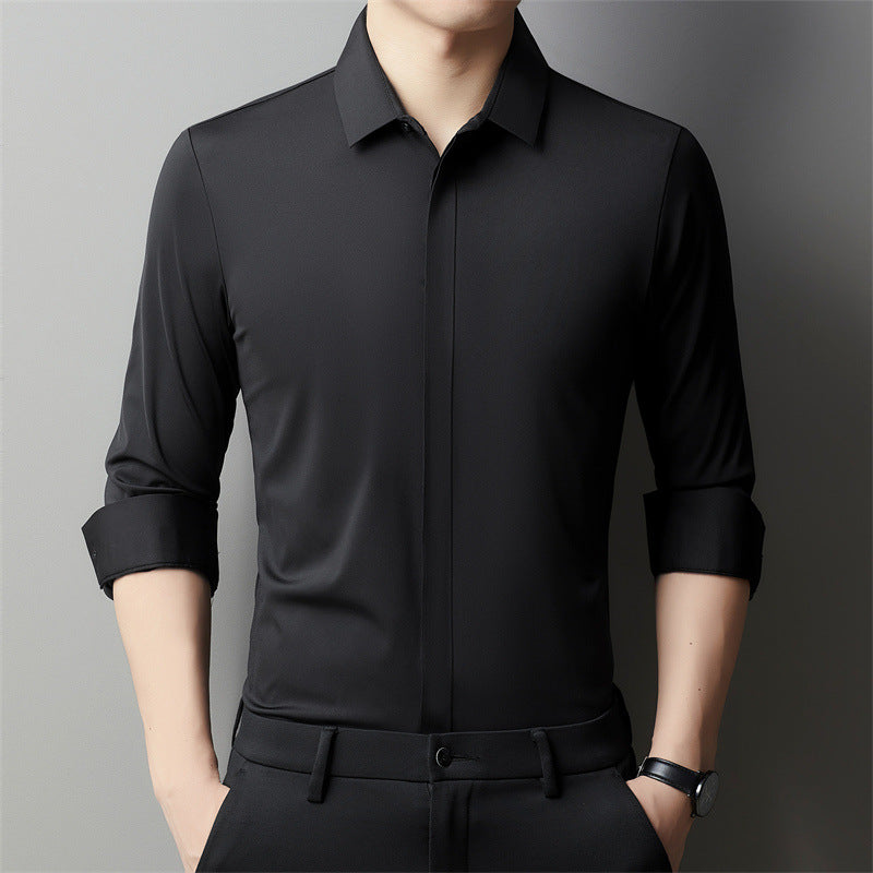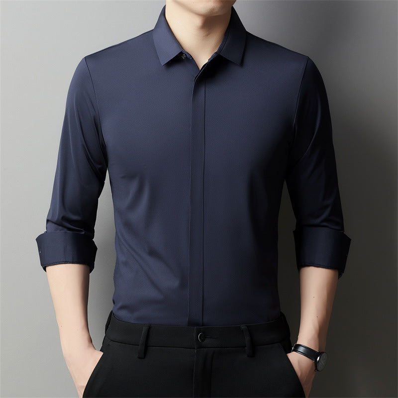 Men’s Long Sleeve Solid Color Shirt with Hidden Hook Closure for Business