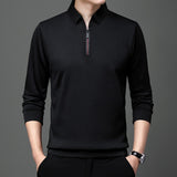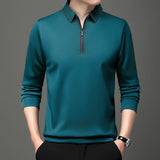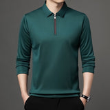Men’s Spring and Autumn Long Sleeve Polo Shirt Half Zipper Fleece-Lined Option