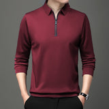 This men’s long sleeve polo shirt features a half zipper with an asymmetric design, suitable for layering in spring and autumn. Constructed from a polyester blend, the shirt retains its shape and offers versions with and without fleece lining. The solid color design ensures easy pairing with a variety of bottoms. Available in multiple colors and sizes up to 4XL, this polo combines functional elements with a modern style for everyday wear.