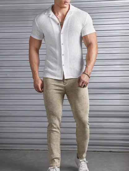 Men’s Short Sleeve Shirt Slim Fit Waffle Texture Lightweight Design