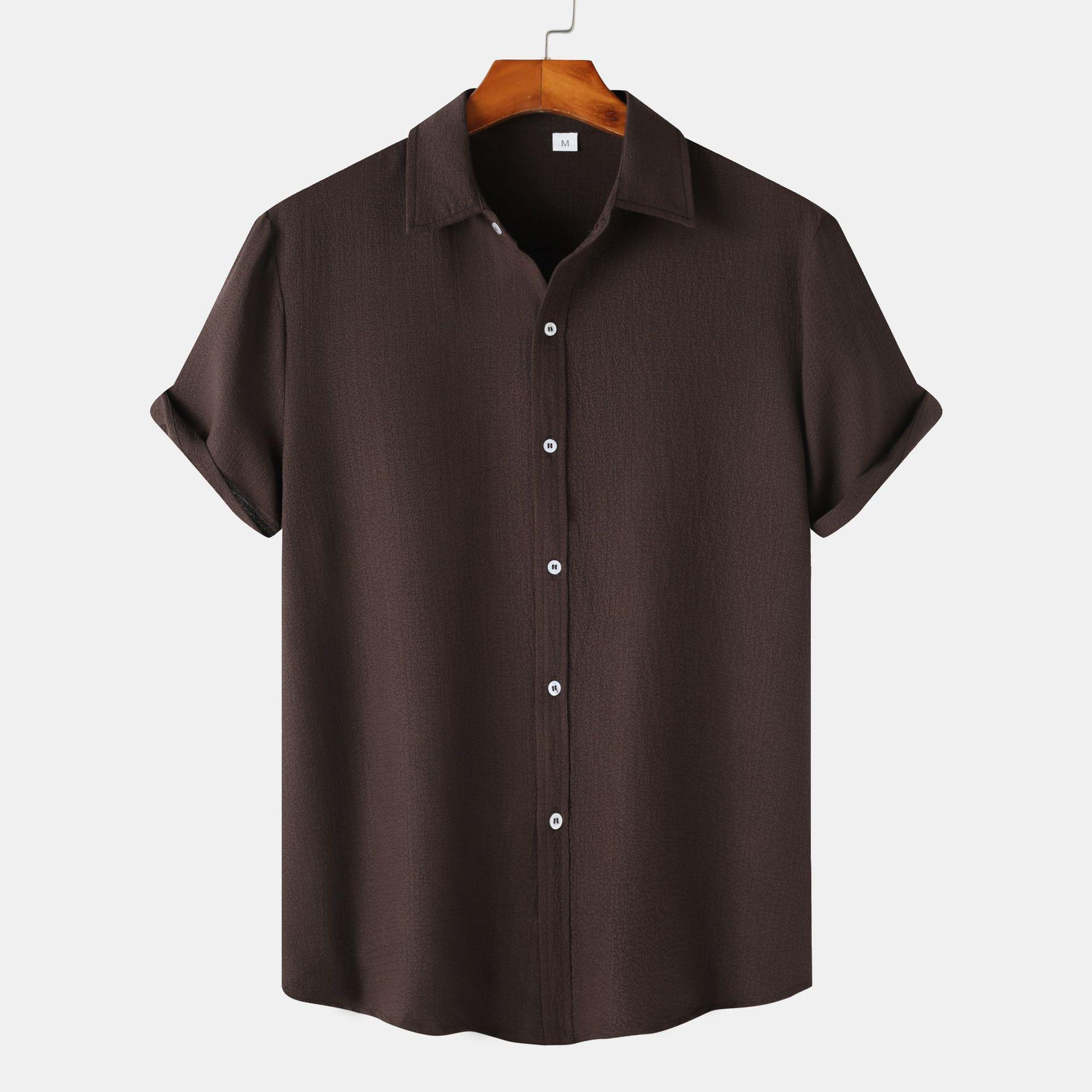 This men’s short sleeve shirt is designed for daily use in warmer weather. Featuring a structured fit and solid color options, it pairs well with a range of outfits for various settings. The short-sleeve cut offers practical wear during hot days, while the smooth fabric blend supports ease of movement. Available in brown, dark gray, peacock blue, and yellow, this shirt comes in sizes M to 3XL.