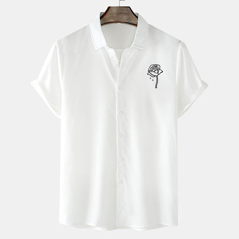 Men’s Short Sleeve Shirt Rose Print Button Down Lightweight Design