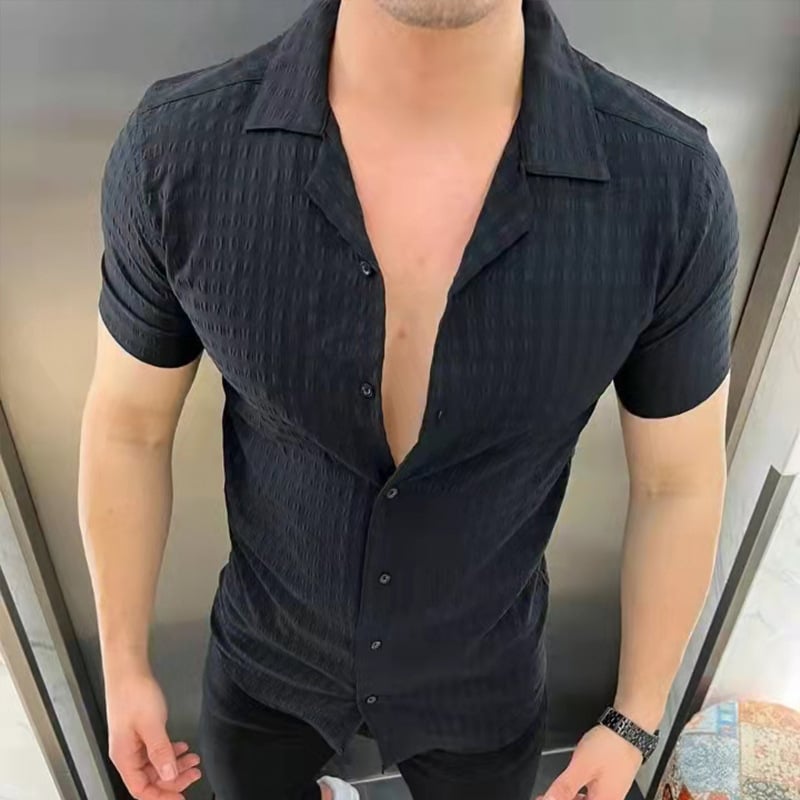 Men’s Short Sleeve Cardigan Slim Fit Lapel Collar Button-Down Solid Colors