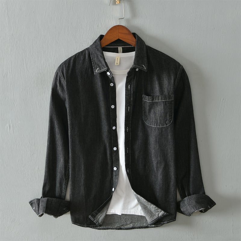 This men's spring shirt jacket combines the structure of a denim jacket with the versatility of a shirt. Designed with a square collar and long sleeves, it offers a clean, minimalist look ideal for transitional weather. The fitted silhouette and button-down front allow for easy layering over t-shirts or under heavier coats. Made entirely from cotton, it offers a crisp feel suitable for everyday wear. The plain design makes it adaptable for a variety of outfits, from workwear to weekend wear.
