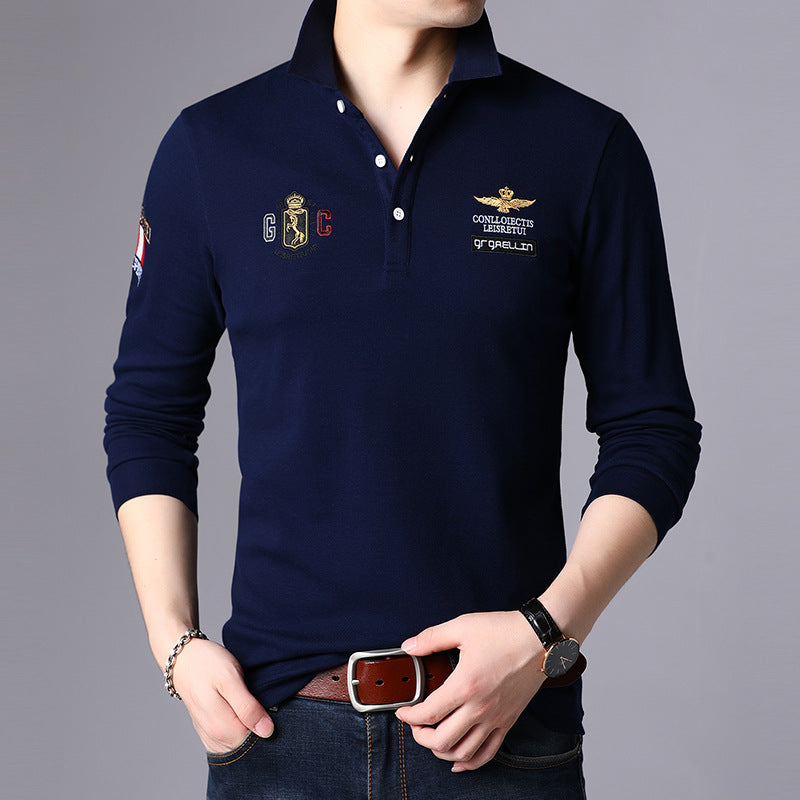 Men's Long Sleeve Slim Fit T-Shirt with Lapel Collar – Solid Color Pullover