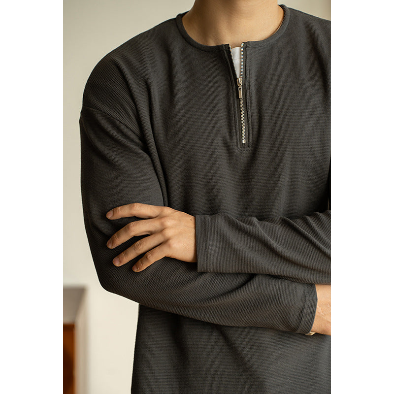 This men’s spring shirt features a clean solid color design with a lapel neckline for a structured touch. The loose fit and long sleeves make it practical for layering or wearing alone in mild weather. Its pullover style keeps the look minimal while offering versatility for daily wear or work settings.