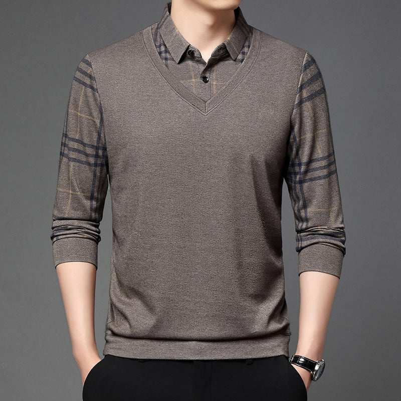 Title: Men Long Sleeve T-shirt Fake Two-Piece Lapel Pullover