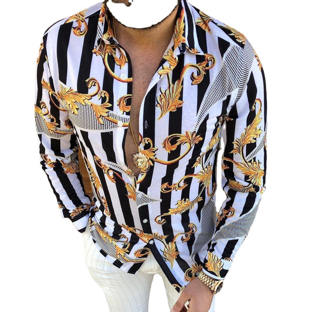 Title: Men Long Sleeve Slim Fit Printed Shirt with Lapel Collar