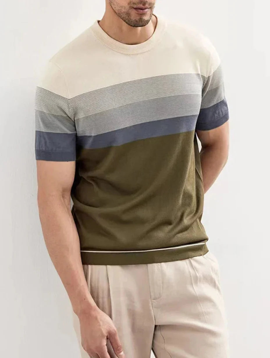 Men T Shirt Striped Knit Short Sleeve Regular Fit