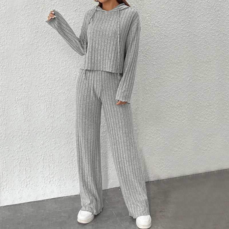 Women Autumn Hooded Two-Piece Suit with Long-Sleeve Top and Full-Length Trousers