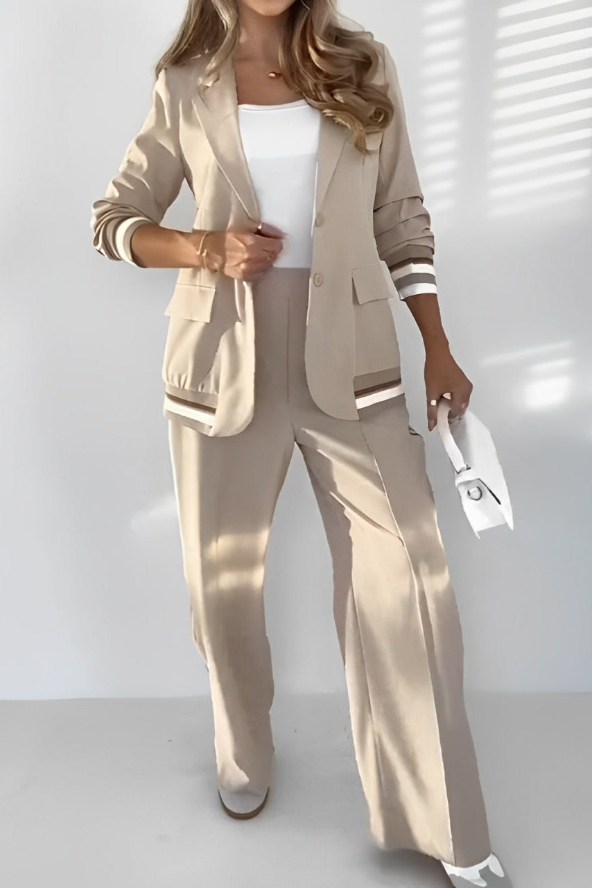 This lounge set includes a structured zip-front top and straight leg trousers designed for a coordinated appearance. The top provides a defined shape, while the trousers maintain a clean silhouette. The set is created for daily use, offering features such as quick drying and minimal maintenance. It is suitable for indoor routines, relaxed outings, or general day-to-day wear without added embellishment.