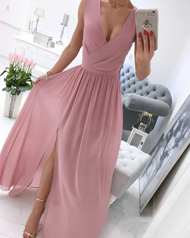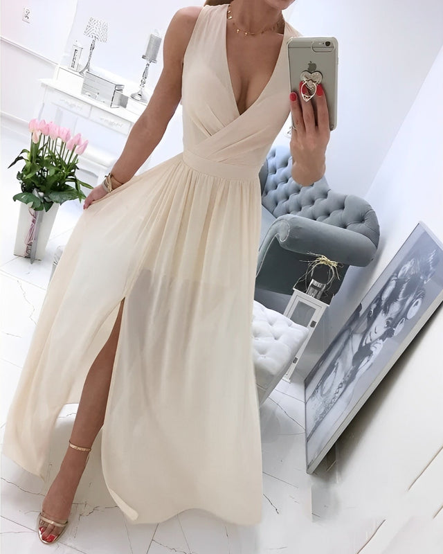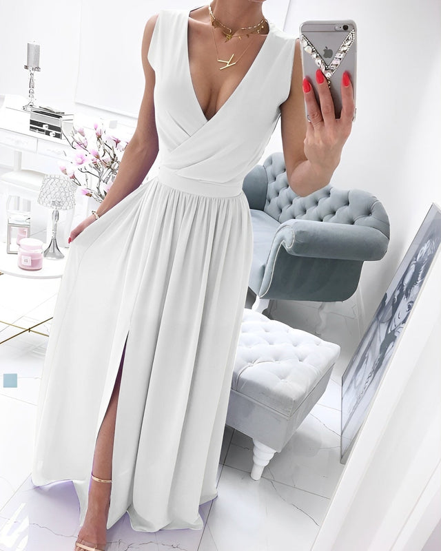 This Spring Maxi Dress features a Sleeveless Design with a V-Neckline and Wrap Front, creating a flattering silhouette suitable for various warm-weather occasions. The Wooden Button Closure adds subtle decorative detail while complementing the flowing maxi length. Its lightweight construction supports ease of wear during outdoor or social events. The dress pairs well with sandals or heels depending on the setting.
