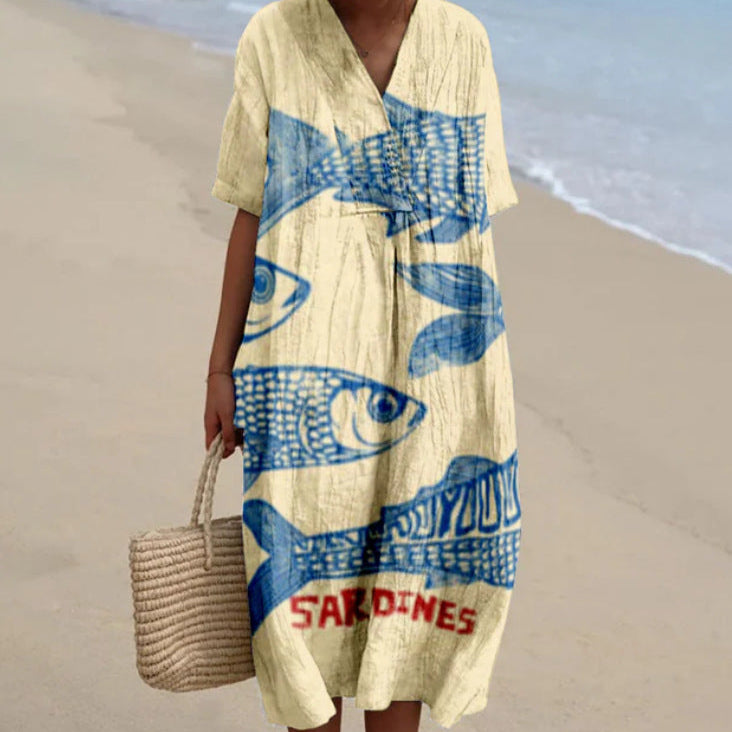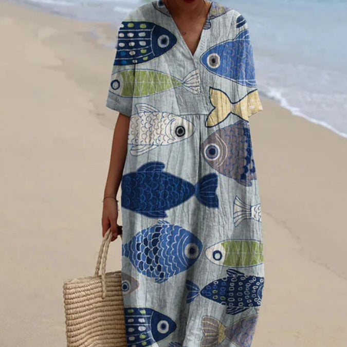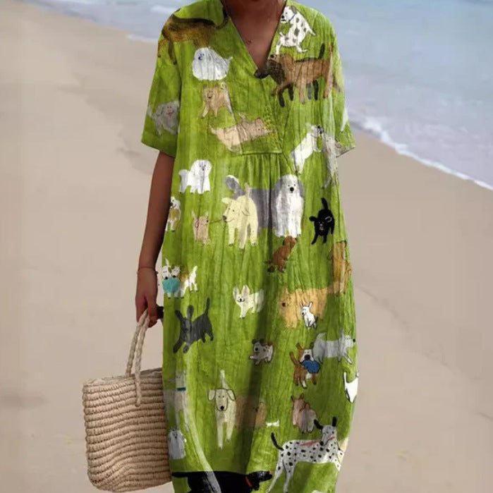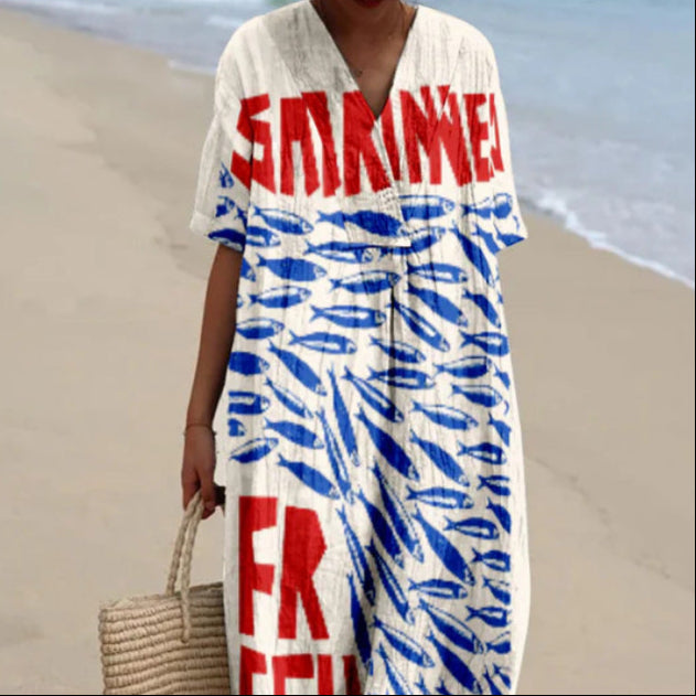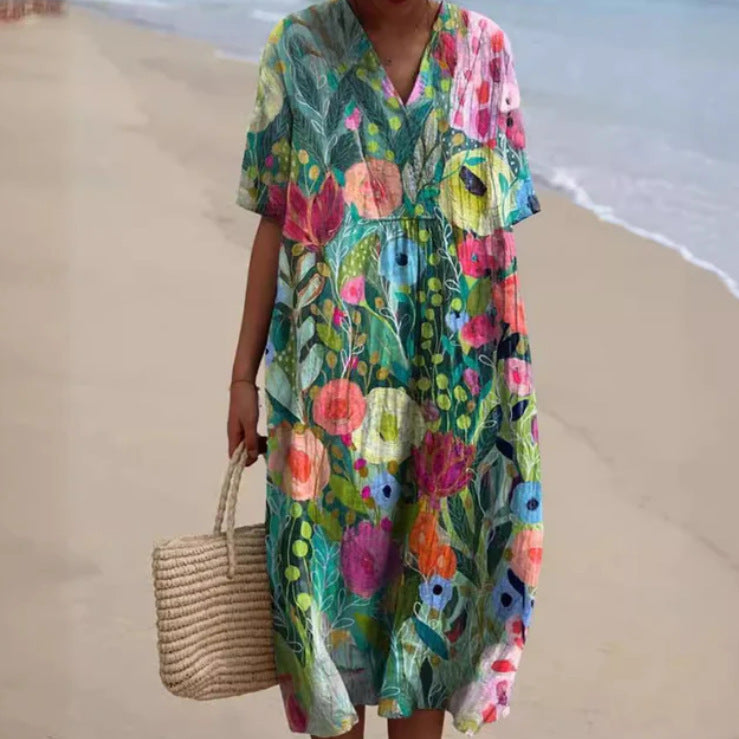 Women’s Long Dress 3D Floral Print With Half Sleeves