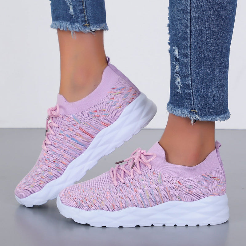 Women Summer Mesh Lace-Up Flat Pumps with Breathable Upper and Rubber Sole