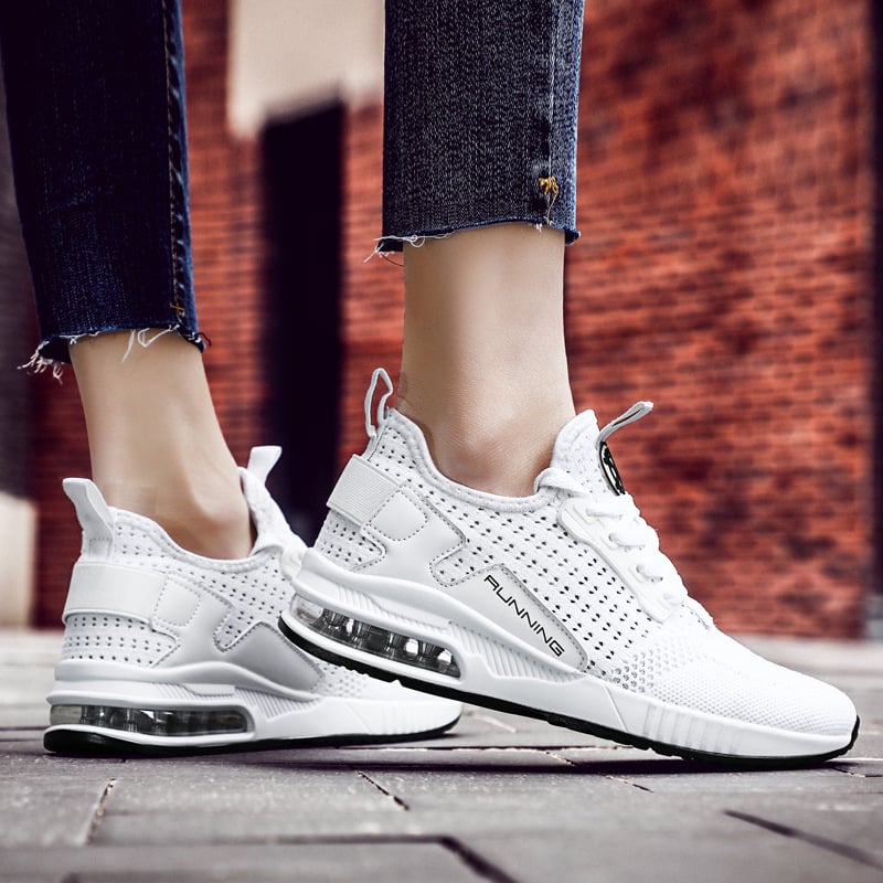 Female Spring Running Shoes Flying Woven Upper Air Cushion Sole Lace-Up