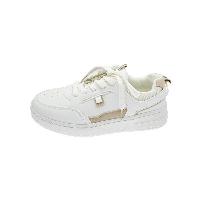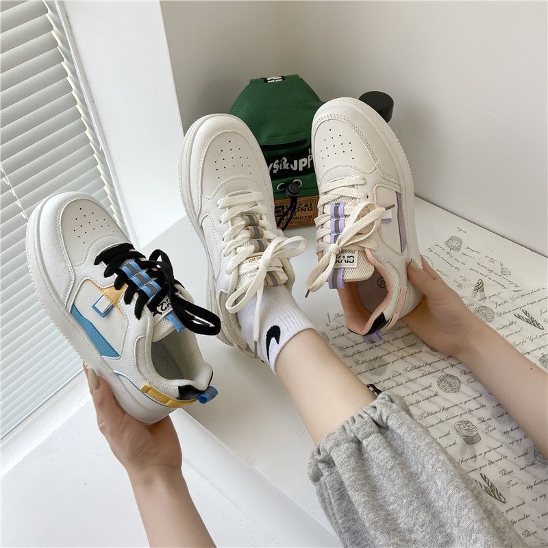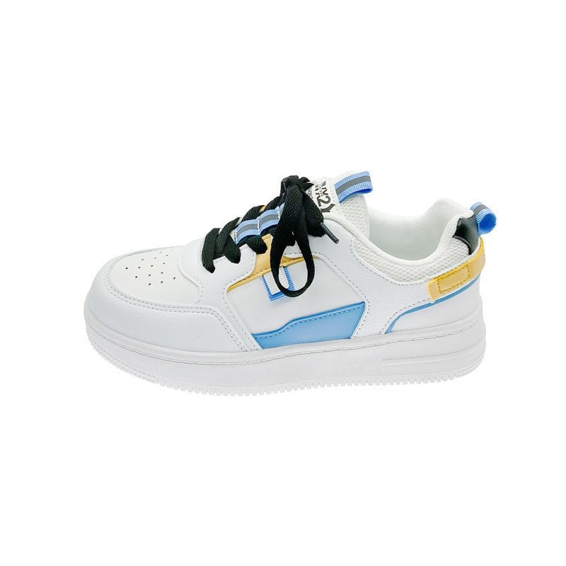 Title: Women Summer Thick-Soled Lace-Up Sneakers Round Toe Color-Block Design