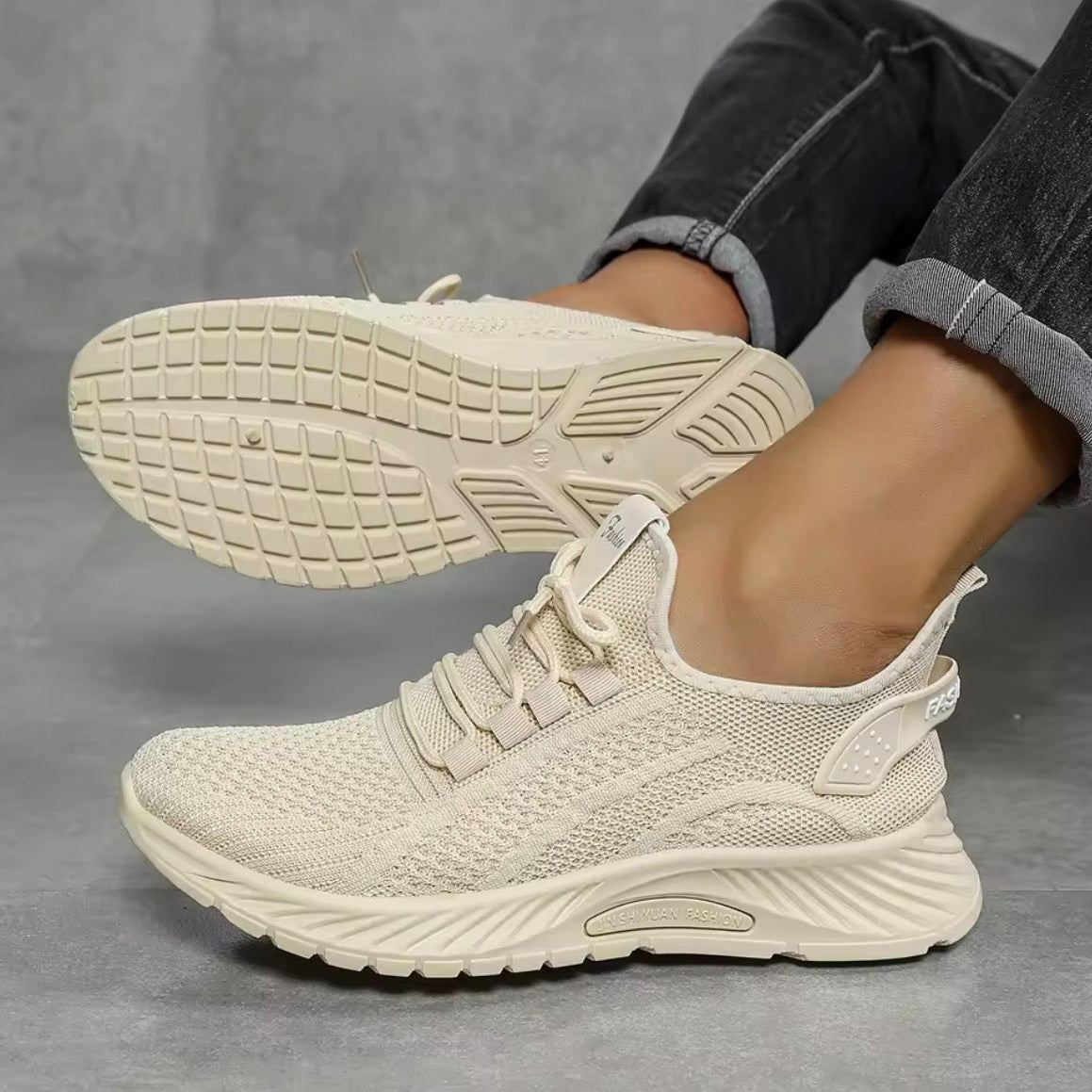 Running shoes designed for active movement with a breathable knit upper that promotes airflow and keeps feet dry. The cushioned ripple sole provides shock absorption and traction for reliable performance during walks, errands, or outdoor activities. Lightweight and flexible, these shoes support natural foot movement and adapt to various surfaces.