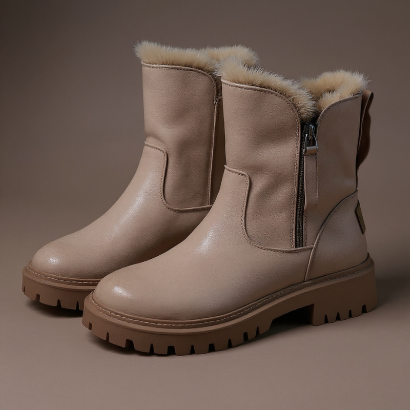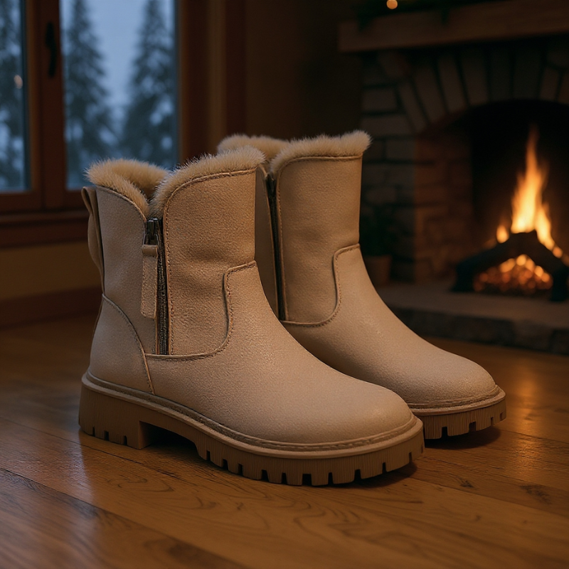 These winter boots feature a soft suede exterior and a plush faux fur lining for added insulation. The easy-on side zipper allows quick wear, while the thick non-slip sole provides stability on varied surfaces. Designed for seasonal use, the boots balance functional support with a clean silhouette, suitable for everyday winter wear. Their structured shape accommodates layering with socks while maintaining a defined profile.