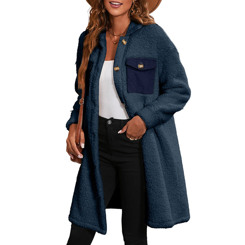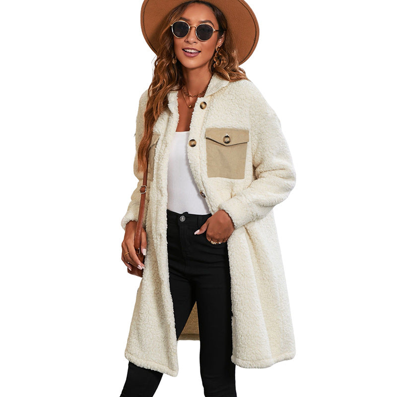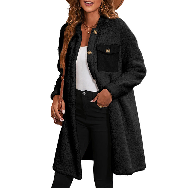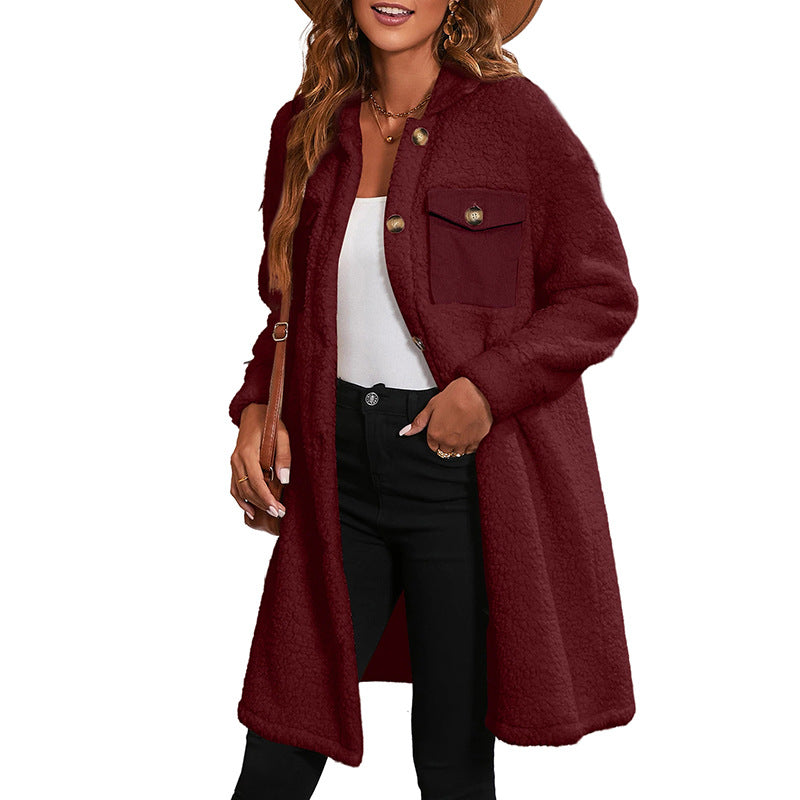 Title: Women Autumn Lambswool Long Jacket Solid Color with Zipper Closure