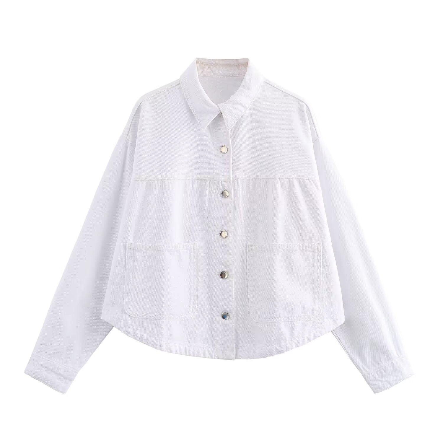 Title: Women Denim Shirt Jacket with Button Front and Spliced Design