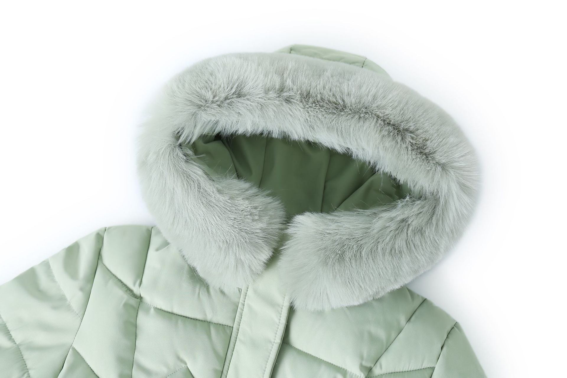 Title: Women Winter Long Coat with Fur Collar and Padded Design