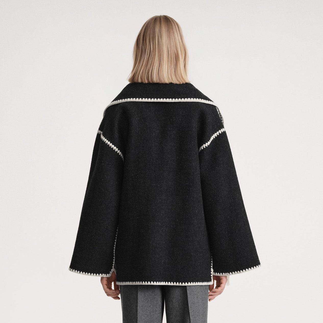 Women Winter Long Coat With Integrated Scarf And Button Closure
