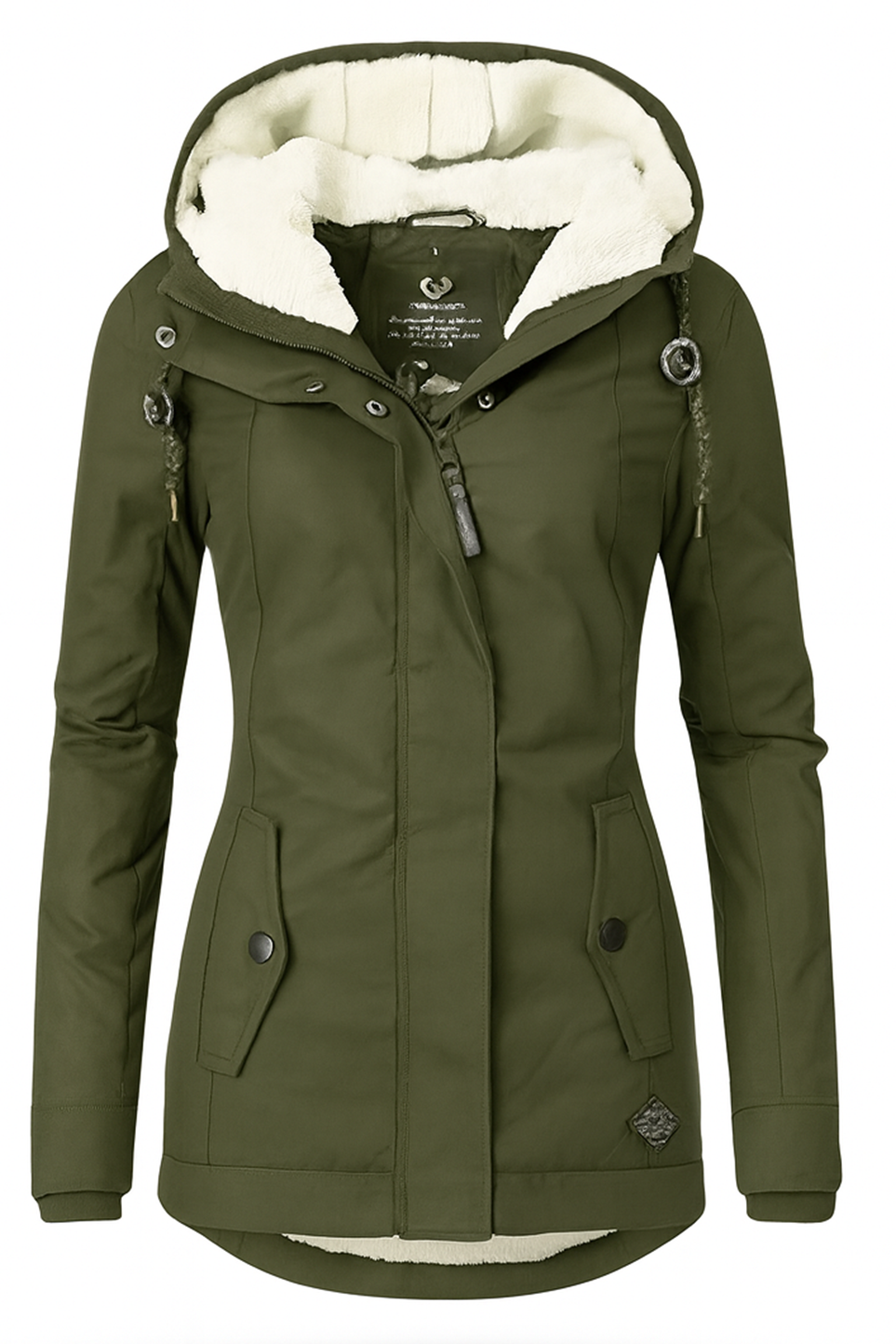 Women Winter Jacket Waterproof With Fleece Lining And Removable Hood