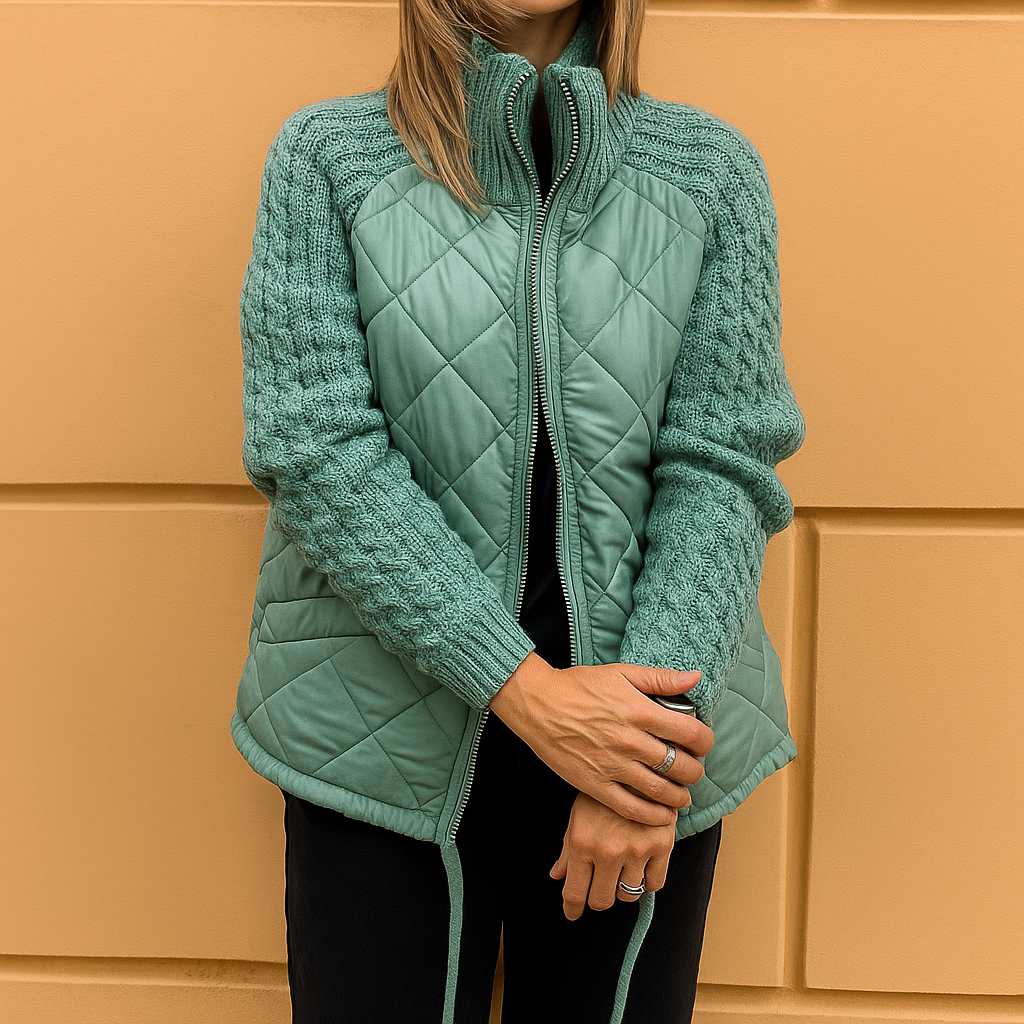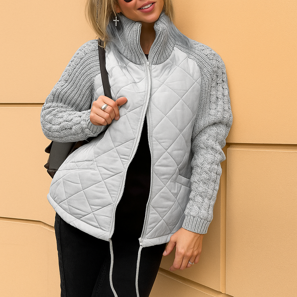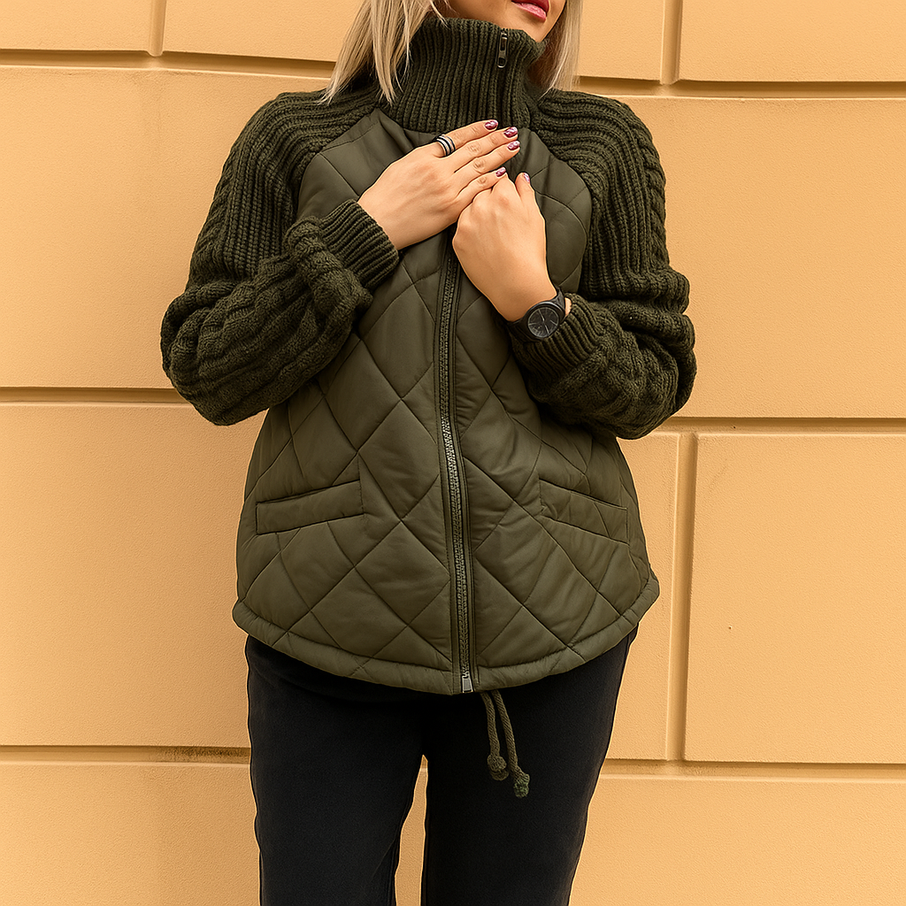 Women Winter Quilted Jacket Knit Sleeves And High Collar