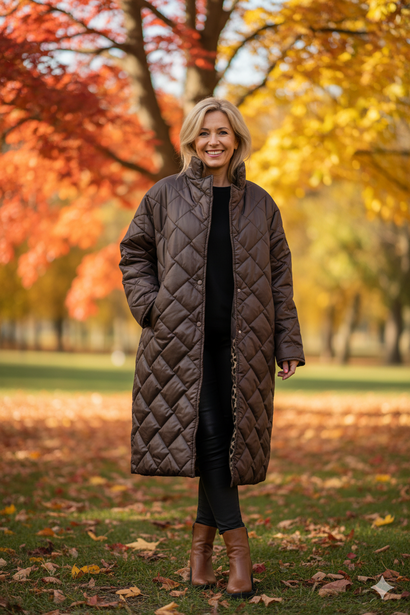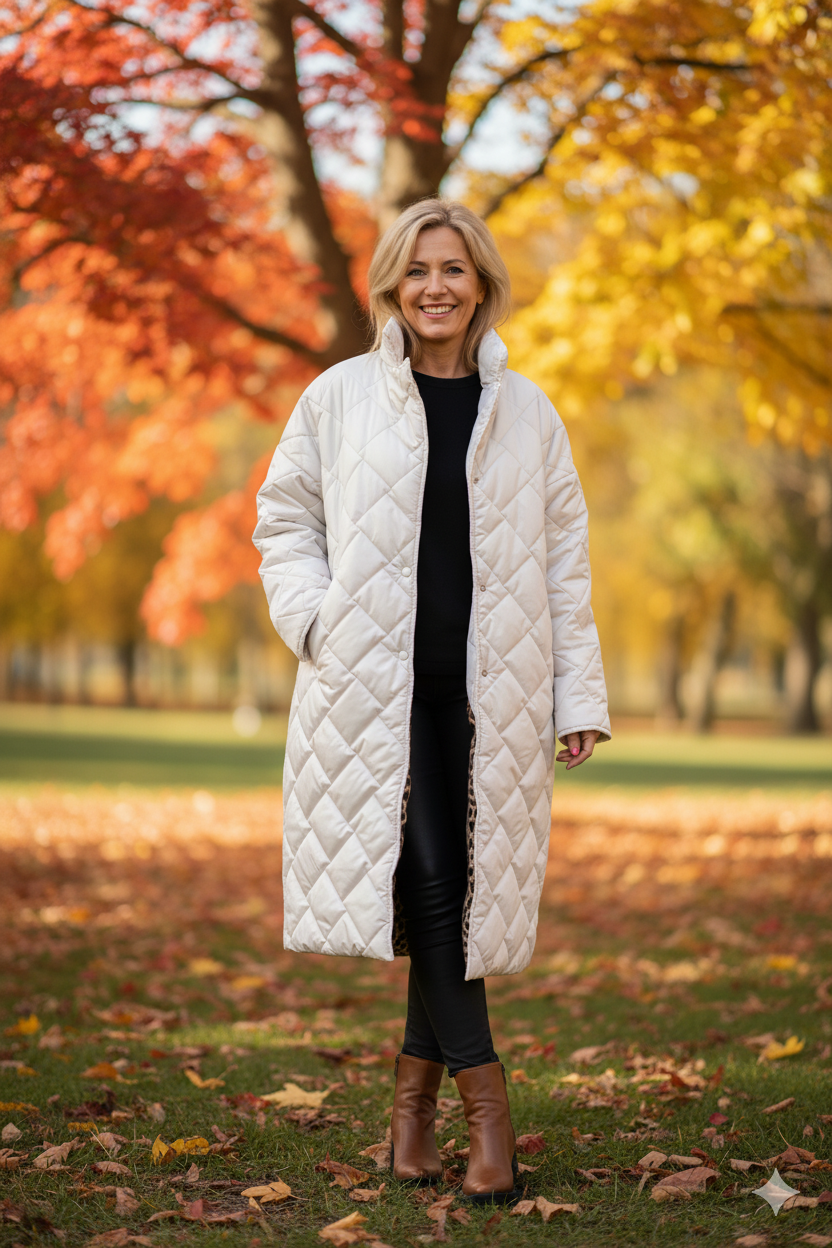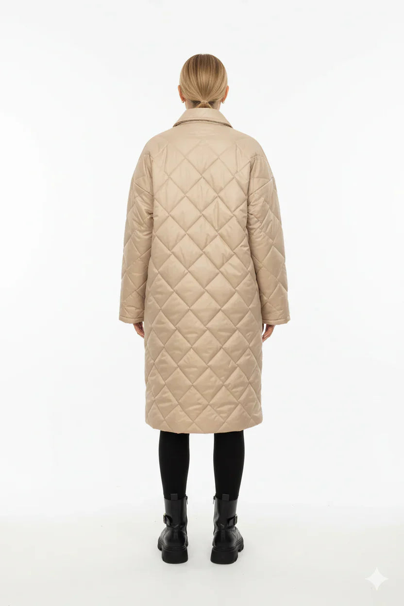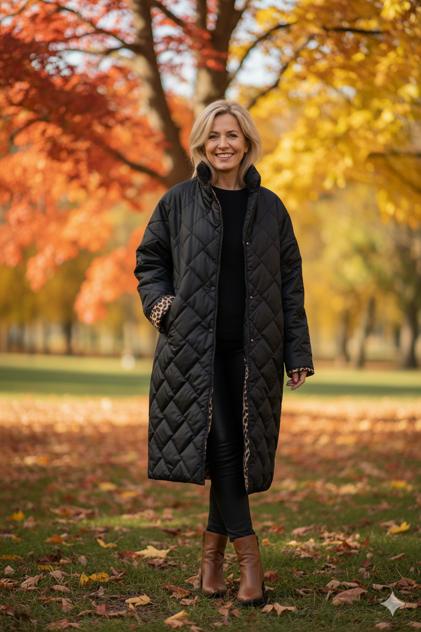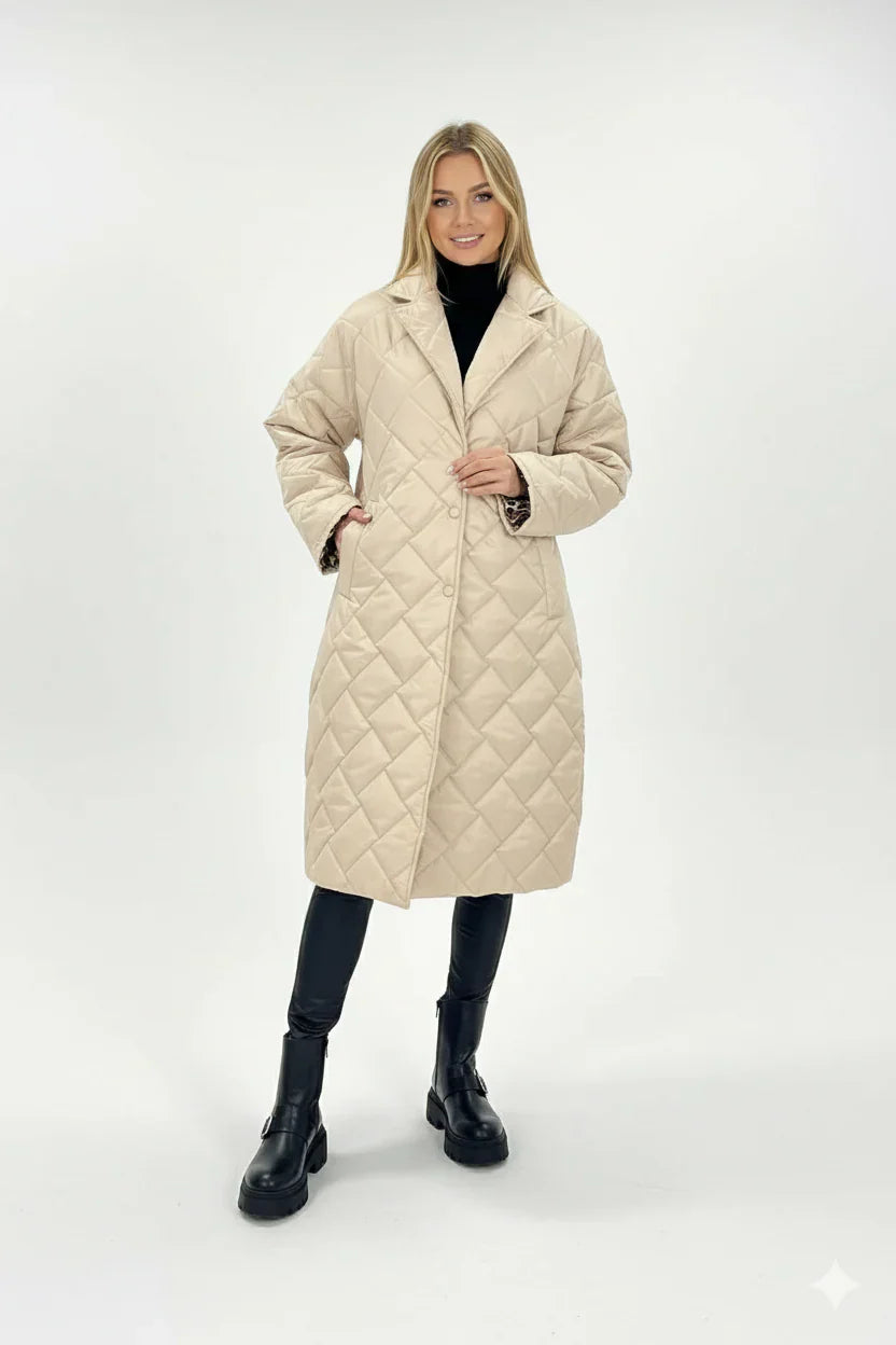 This reversible padded jacket offers two wearable styles in one piece, featuring a printed lining on one side and a plain exterior on the other. The extended coverage supports use during colder days, while the padded structure provides consistent insulation. Its hoodless design keeps the silhouette streamlined, and the straight cut allows layering without restricting movement. Suitable for daily wear in urban or outdoor settings, it maintains practical use throughout the winter season.