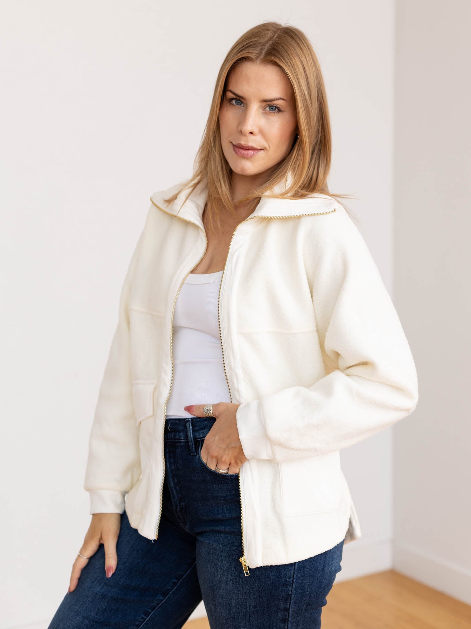 Designed for everyday layering, this jacket features a clean zip-front closure and a structured collar that creates a balanced and practical outerwear option for autumn use. The slightly extended length offers added coverage, while the dual front pockets provide functional storage without altering the streamlined silhouette. The relaxed cut allows easy pairing with various outfits, making it suitable for daily wear and transitional weather conditions. Its simple construction focuses on shape, proportion, and usability rather than decorative elements.