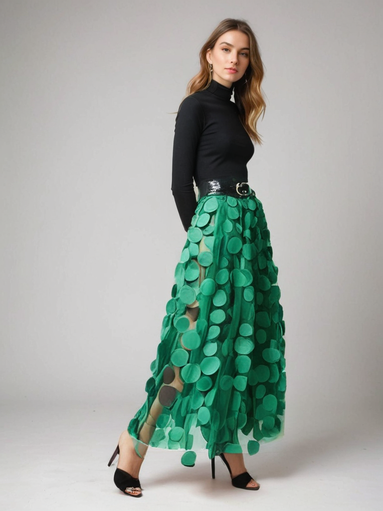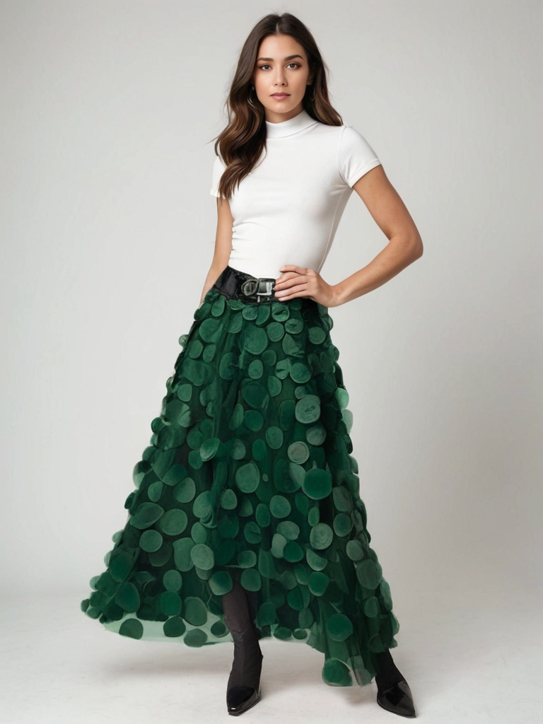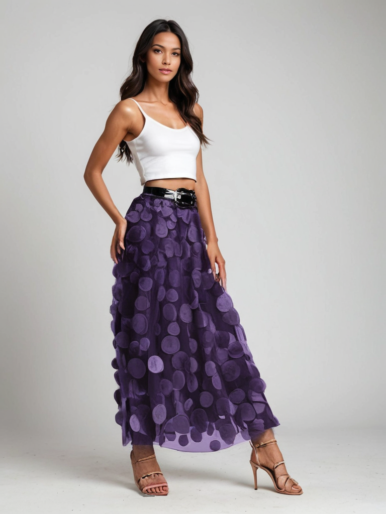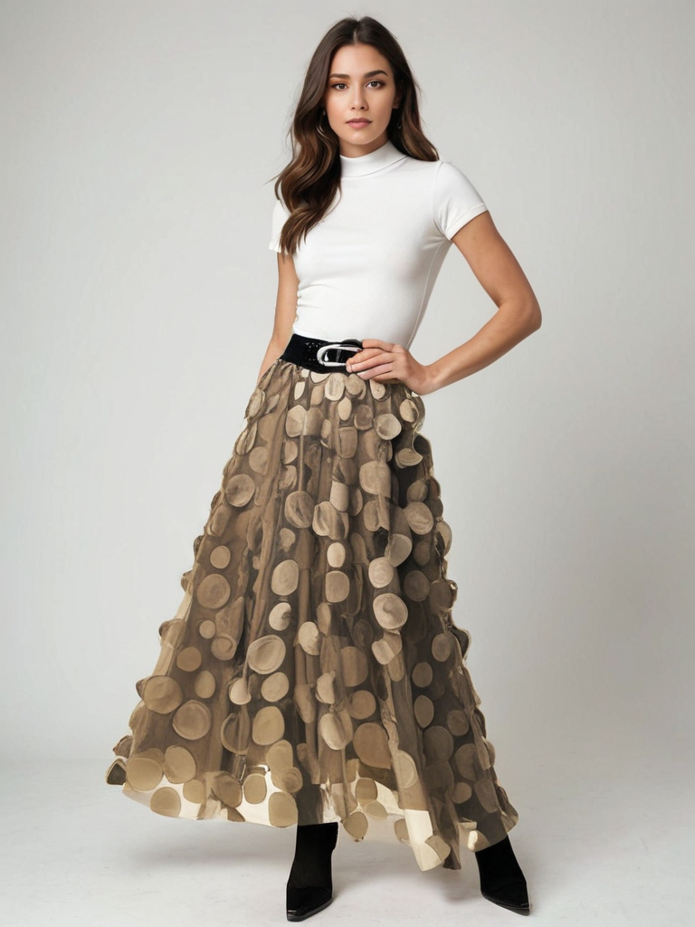 This Tulle Skirt features a Light Polka Dot Pattern layered over sheer fabric, creating a lightweight and semi-structured silhouette. The Elastic Waistband allows for flexible sizing and easy wear. Designed to pair with a variety of tops, this skirt transitions between settings with minimal styling effort.