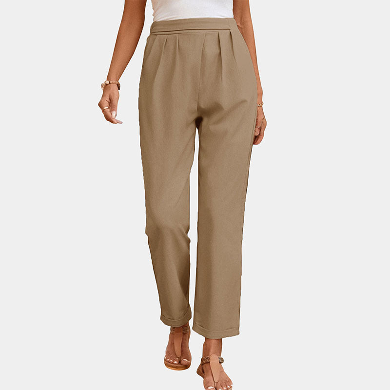 Title: Women High-Waist Straight-Leg Trousers with Solid Color Design