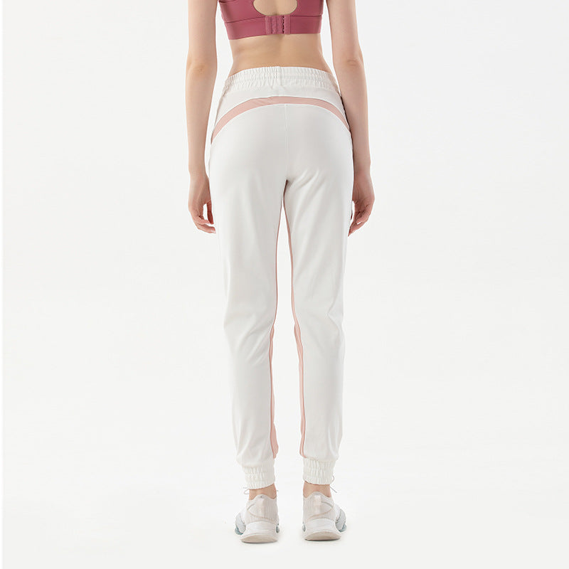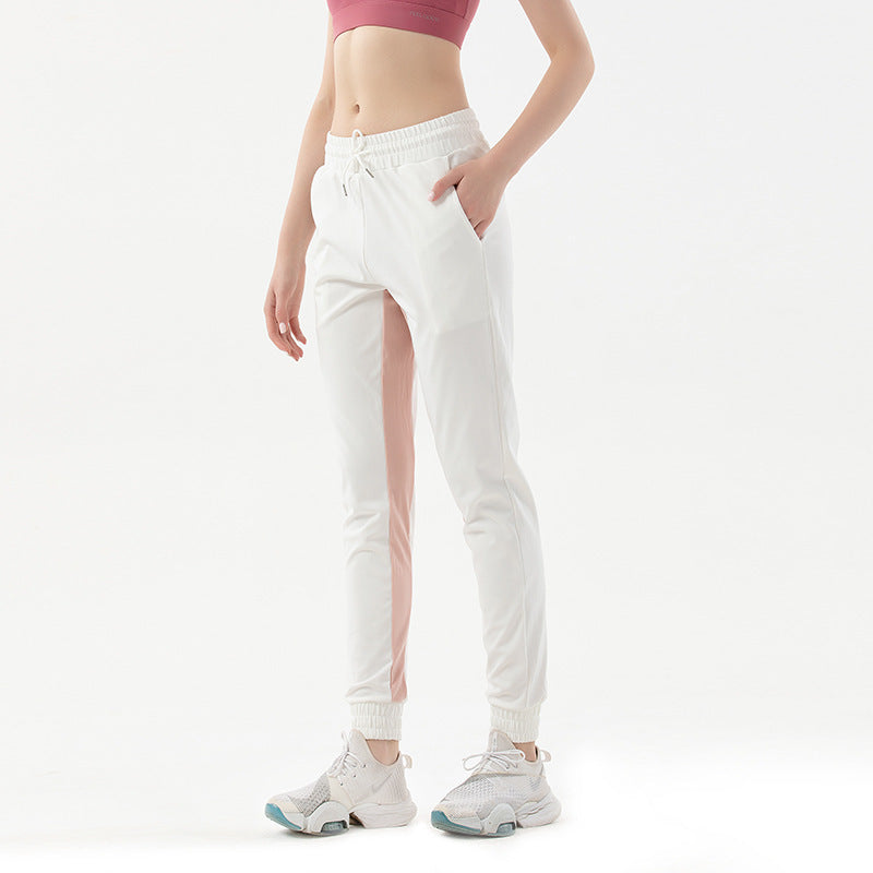 These women’s sports trousers are designed for movement and breathability. Featuring a contrast color panel design and a mid-waist, tapered fit, they offer a modern athletic look suitable for workouts or daily wear. The quick-dry function helps maintain freshness during active routines, while the loose upper and closed-leg finish ensure unrestricted motion.