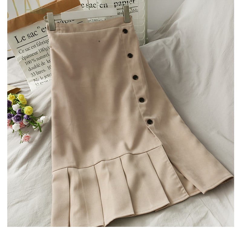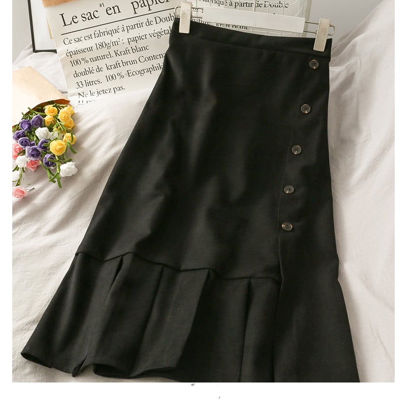Title: Women Button-Front Mid-Length Skirt with Side Slit
