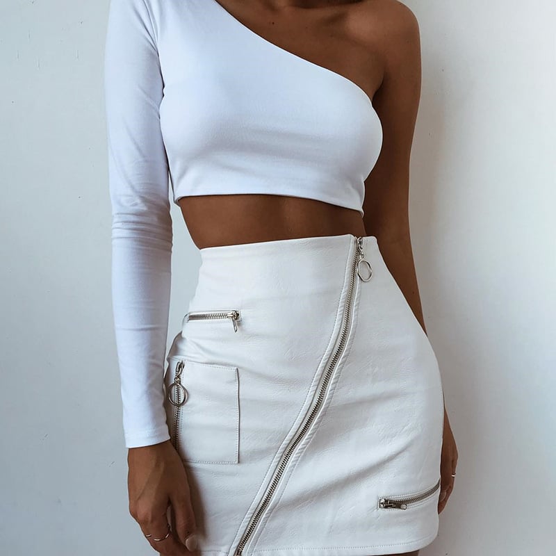 Title: Women White A-line Skirt Zip Pocket Hip Design