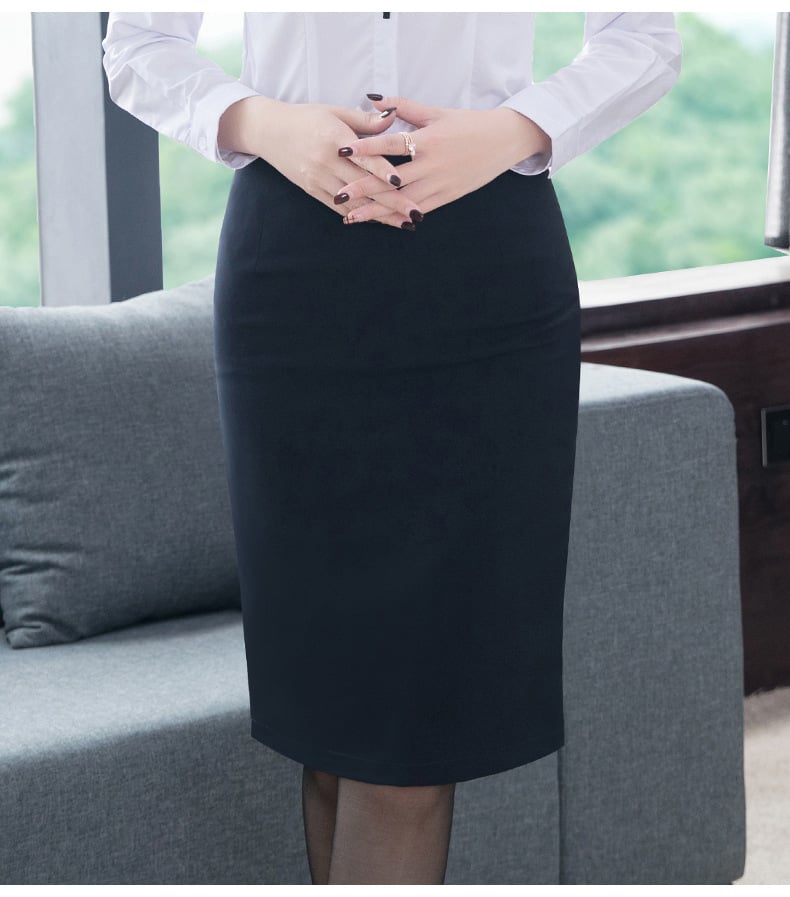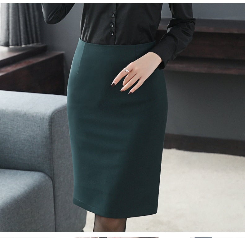 • Mid-length hip skirt: Offers a balanced and professional silhouette