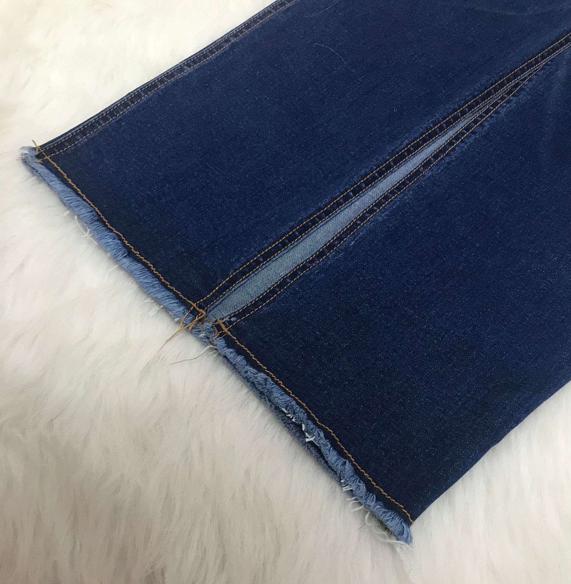 This mid-length denim skirt features a side slit and tassel accents, combining subtle detailing with a structured silhouette. The medium-elastic denim provides a slight stretch for ease of movement, while the mid-length cut makes it versatile for commute or everyday wear. Designed for a flattering fit, it pairs well with a variety of tops and shoes.