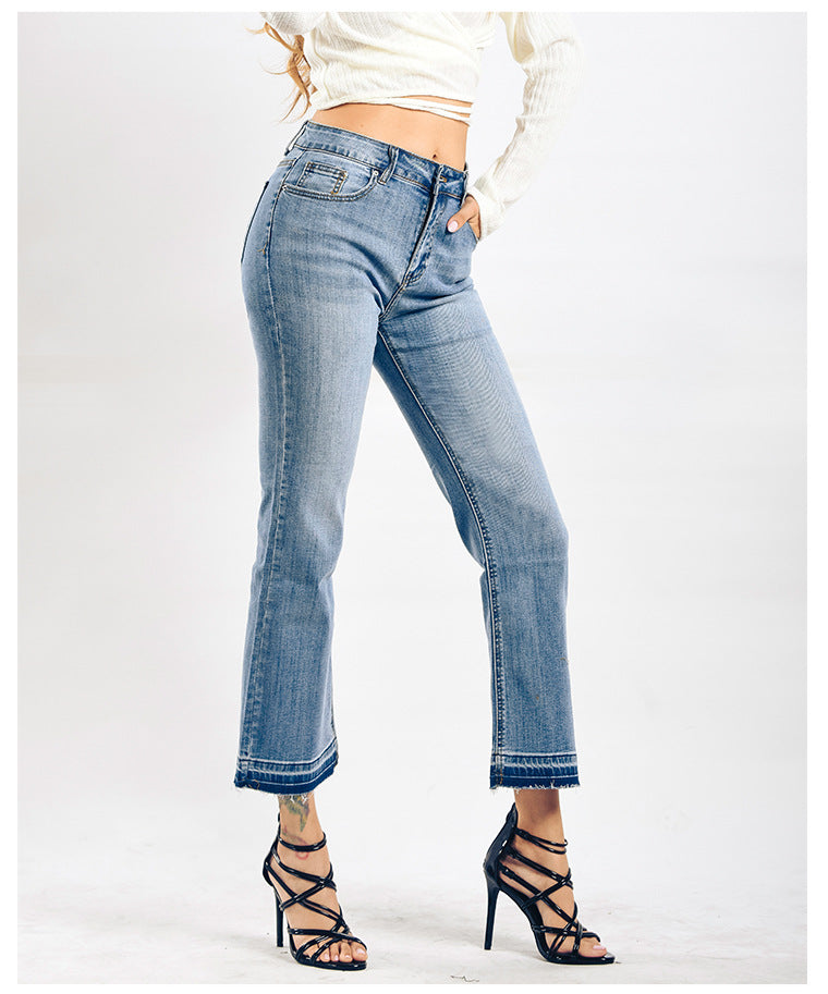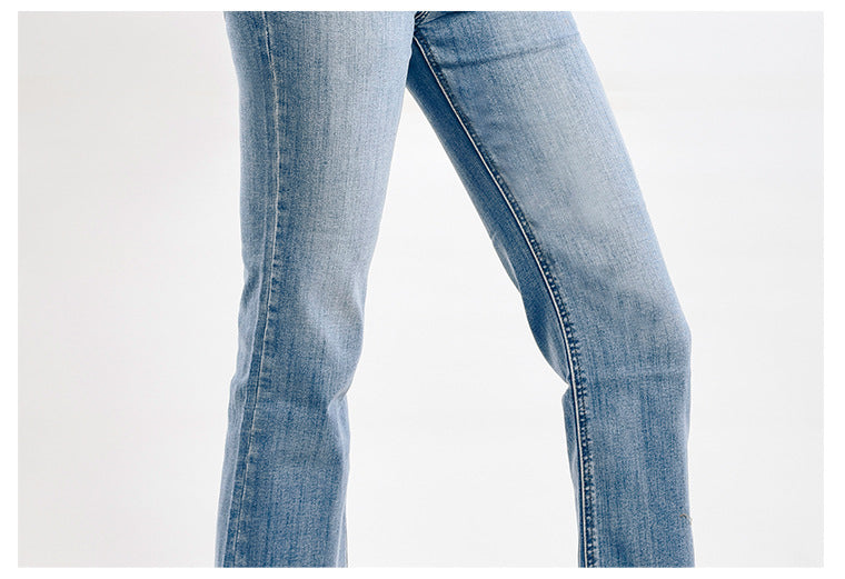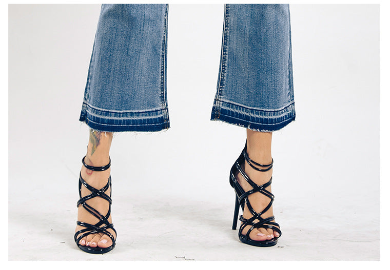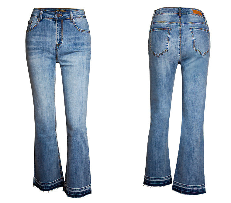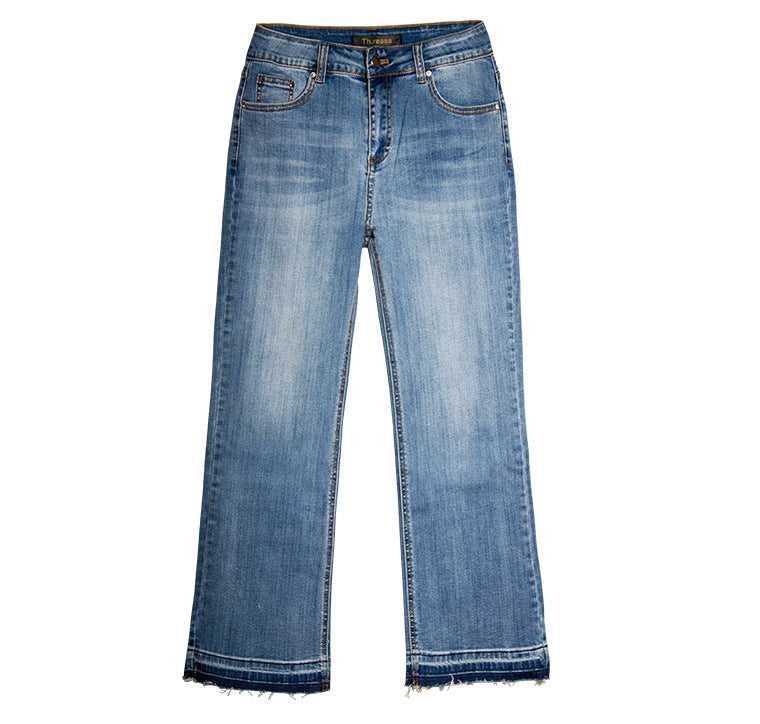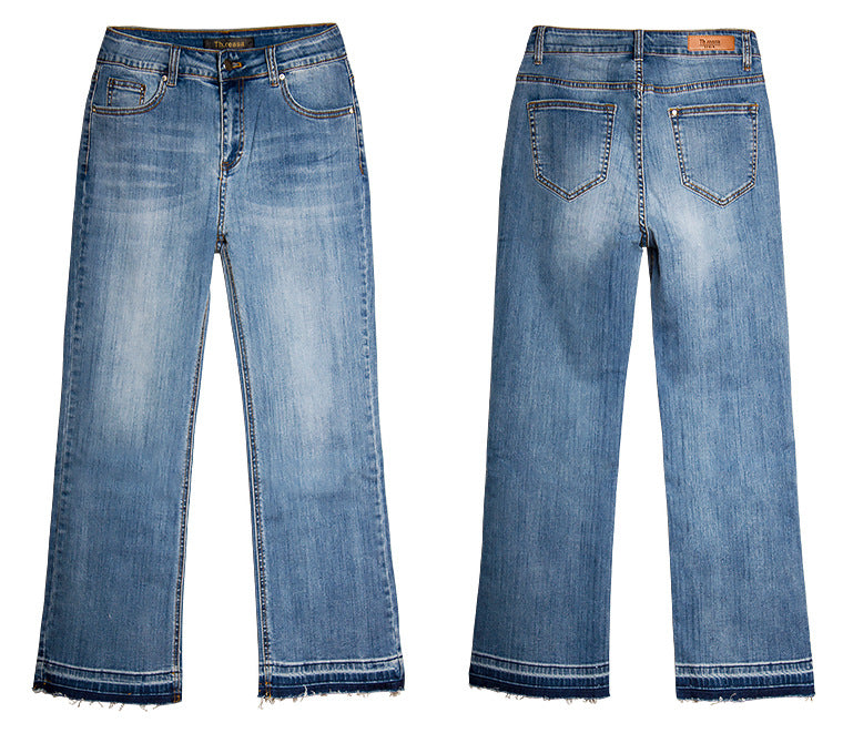 These ankle-length jeans feature a wide-leg bootcut design with a washed finish for a relaxed, contemporary look. The elastic waistband allows for ease of wear, while the loose fit offers mobility without compromising style. Ideal for streetwear-inspired outfits, these jeans pair effortlessly with a variety of tops and footwear.