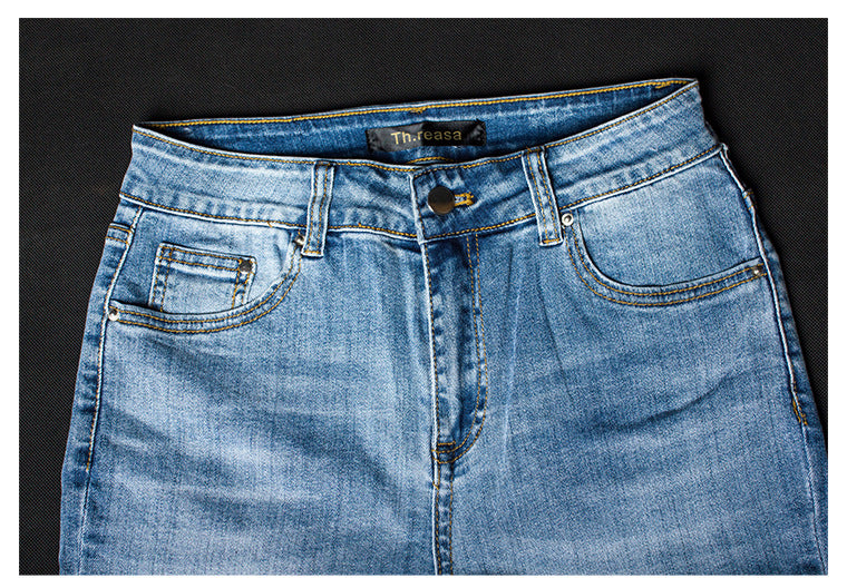 Title: Women's Washed Denim Wide-Leg Ankle-Length Jeans with Elastic Waist