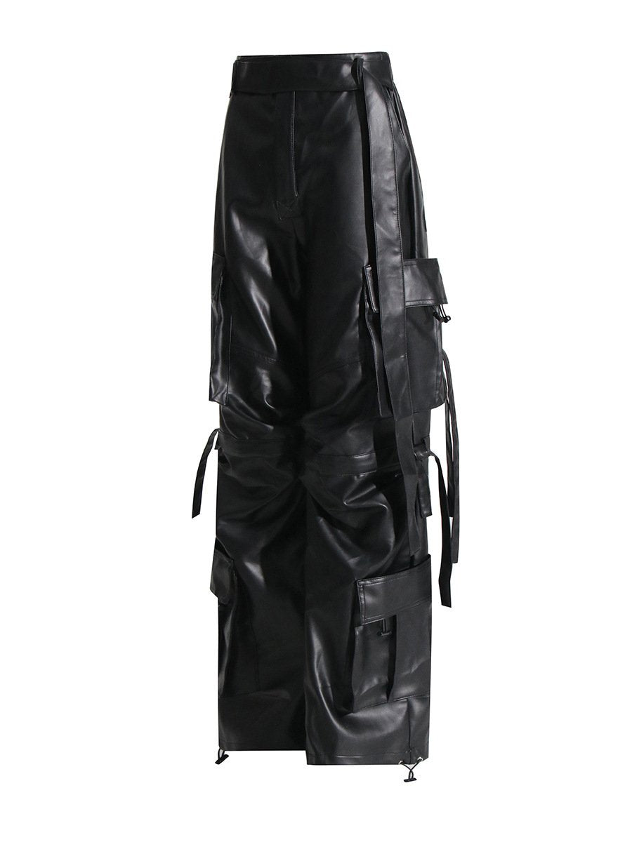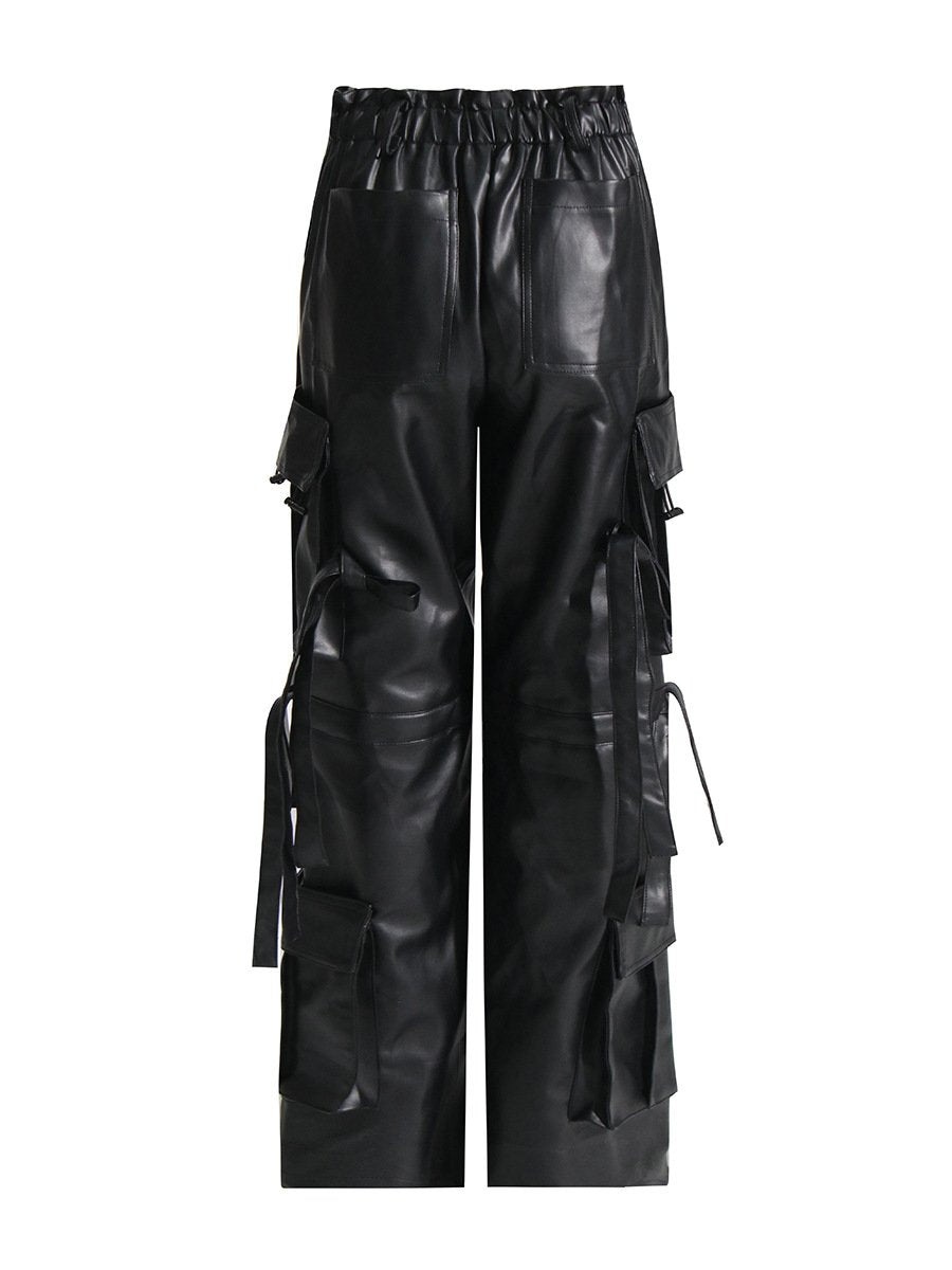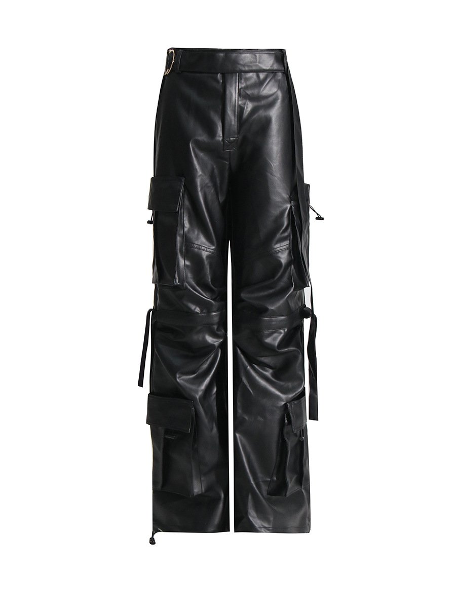 These women’s straight-leg pants feature a sleek high-waist design that enhances shape while maintaining a structured appearance. The PU material adds a subtle sheen, making them suitable for both modern streetwear and refined outfits. The streamlined cut provides a clean, tailored silhouette that pairs effortlessly with various tops and footwear.