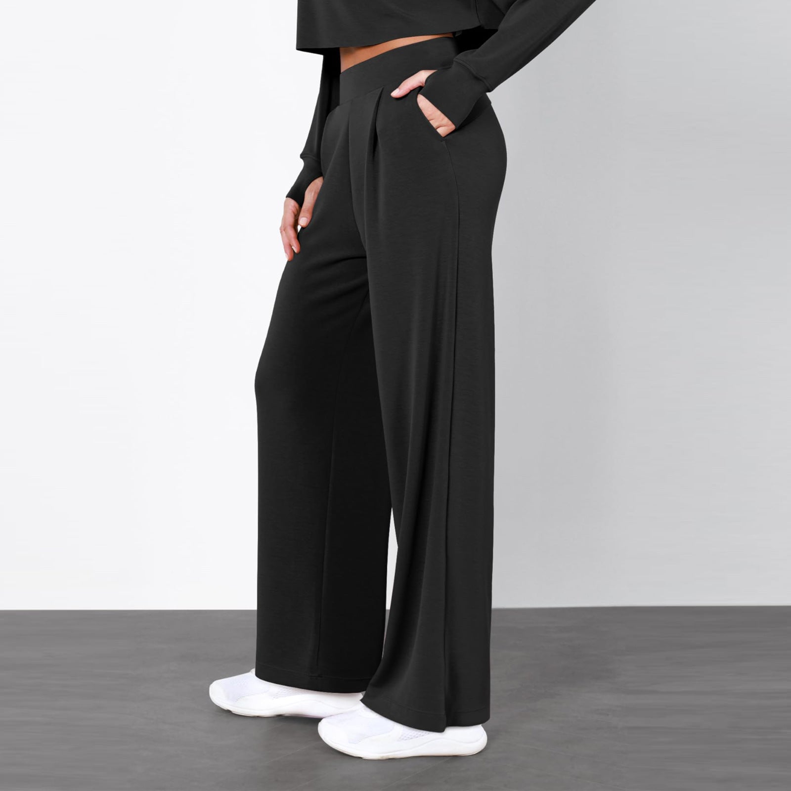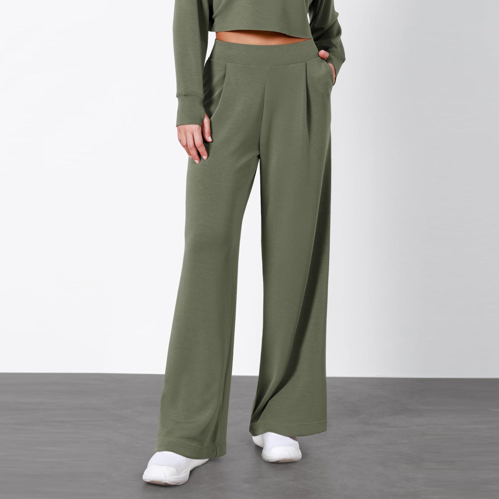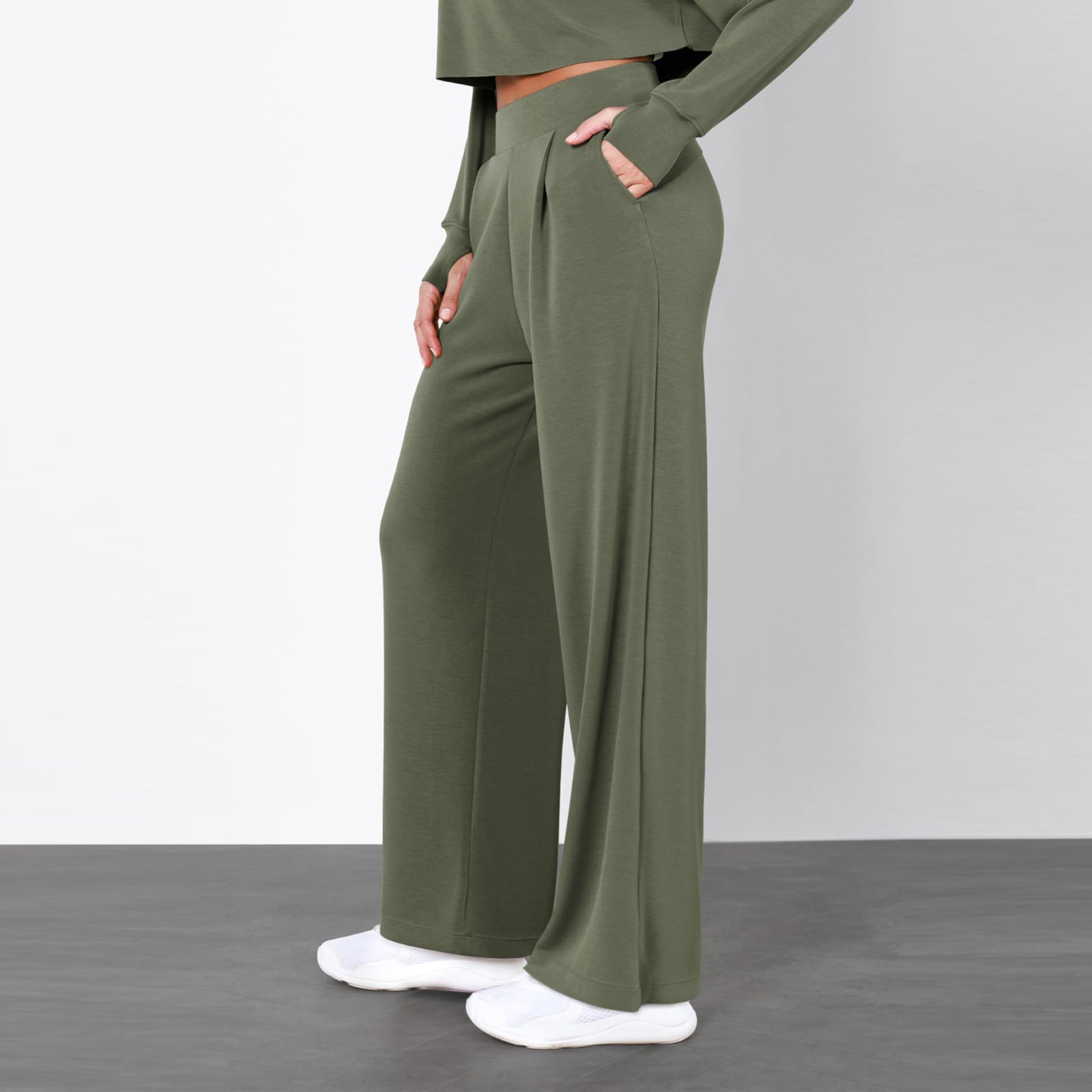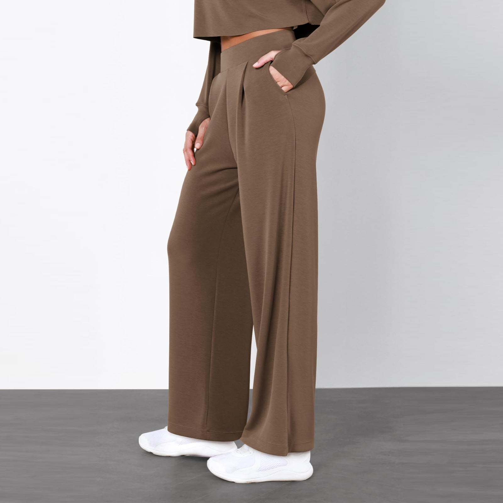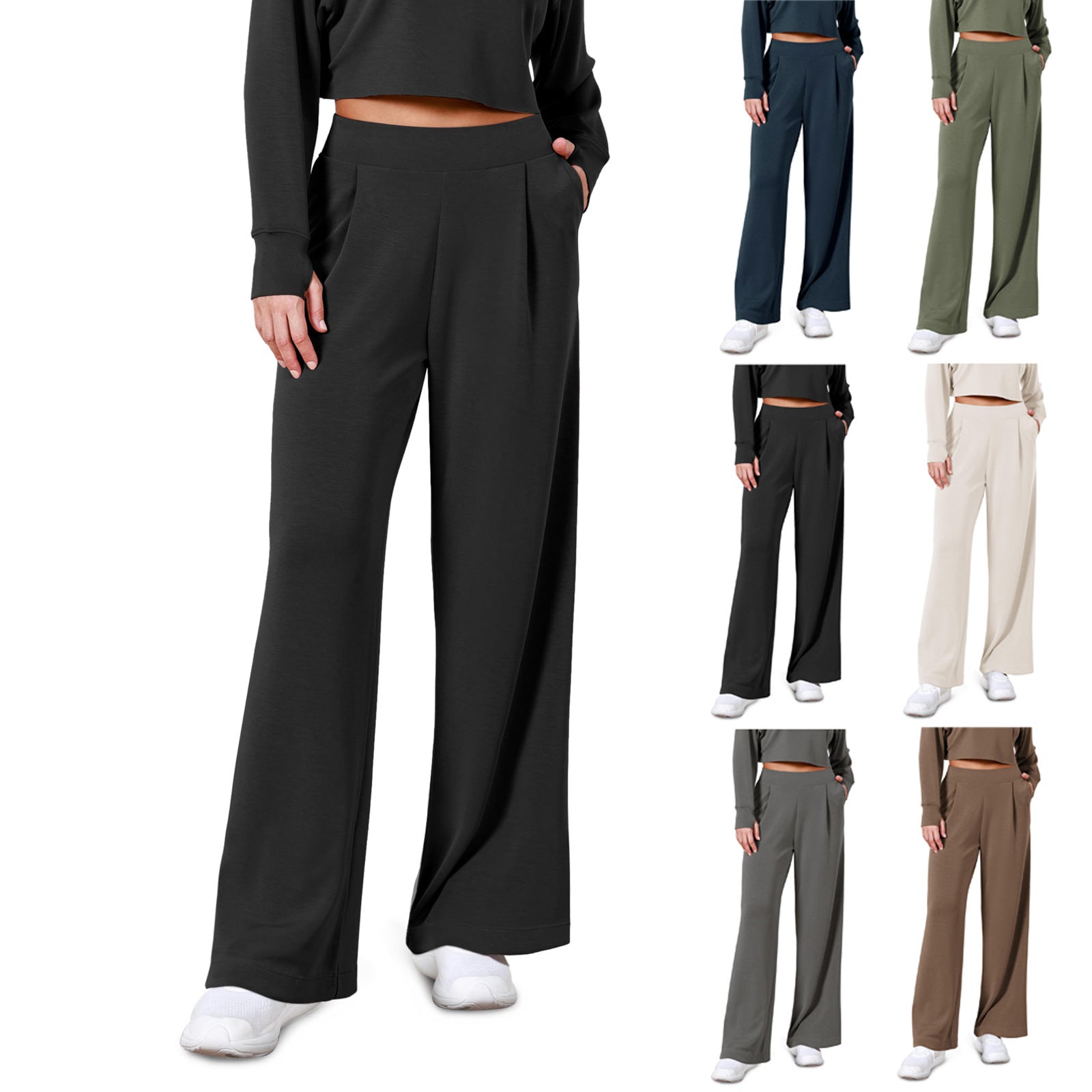 These women’s straight-leg trousers feature a structured high waist and a softly draped silhouette that enhances a sleek, elongated look. Designed with a full-length cut and smooth fall, they offer a clean, polished appearance suitable for office wear or daily use. The non-elastic construction maintains their shape and ensures a neat fit.