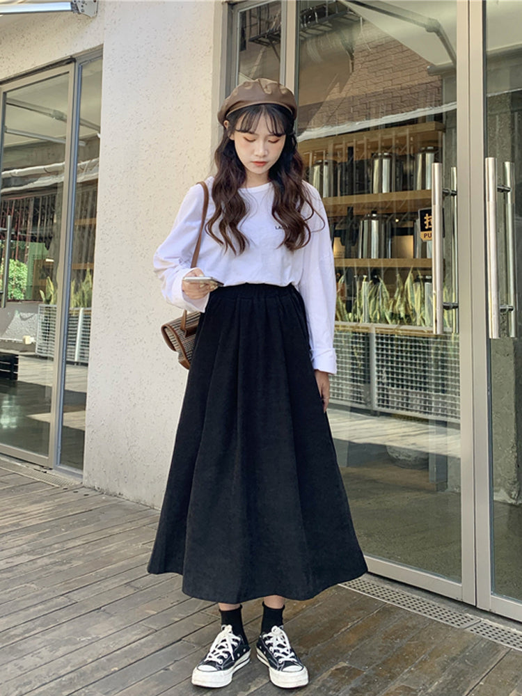 Title: Women’s High Waist A-Line Midi Skirt with Flared Hem
