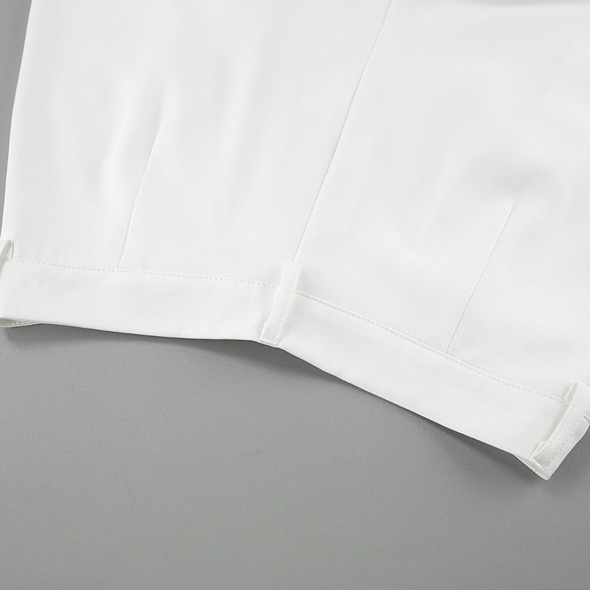These women’s high waist straight leg trousers feature a clean silhouette and relaxed structure, offering a balanced look suitable for both office and everyday wear. Designed in a crisp white tone, they create a refined and versatile base for pairing with shirts, blouses, or fitted tops. The straight cut adds definition to the leg line while maintaining ease of movement. Available in multiple sizes, these trousers blend simplicity with a structured finish.