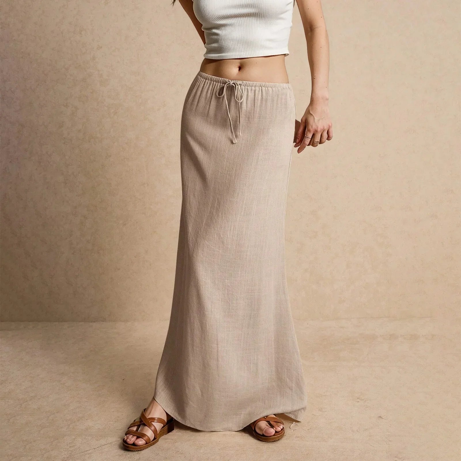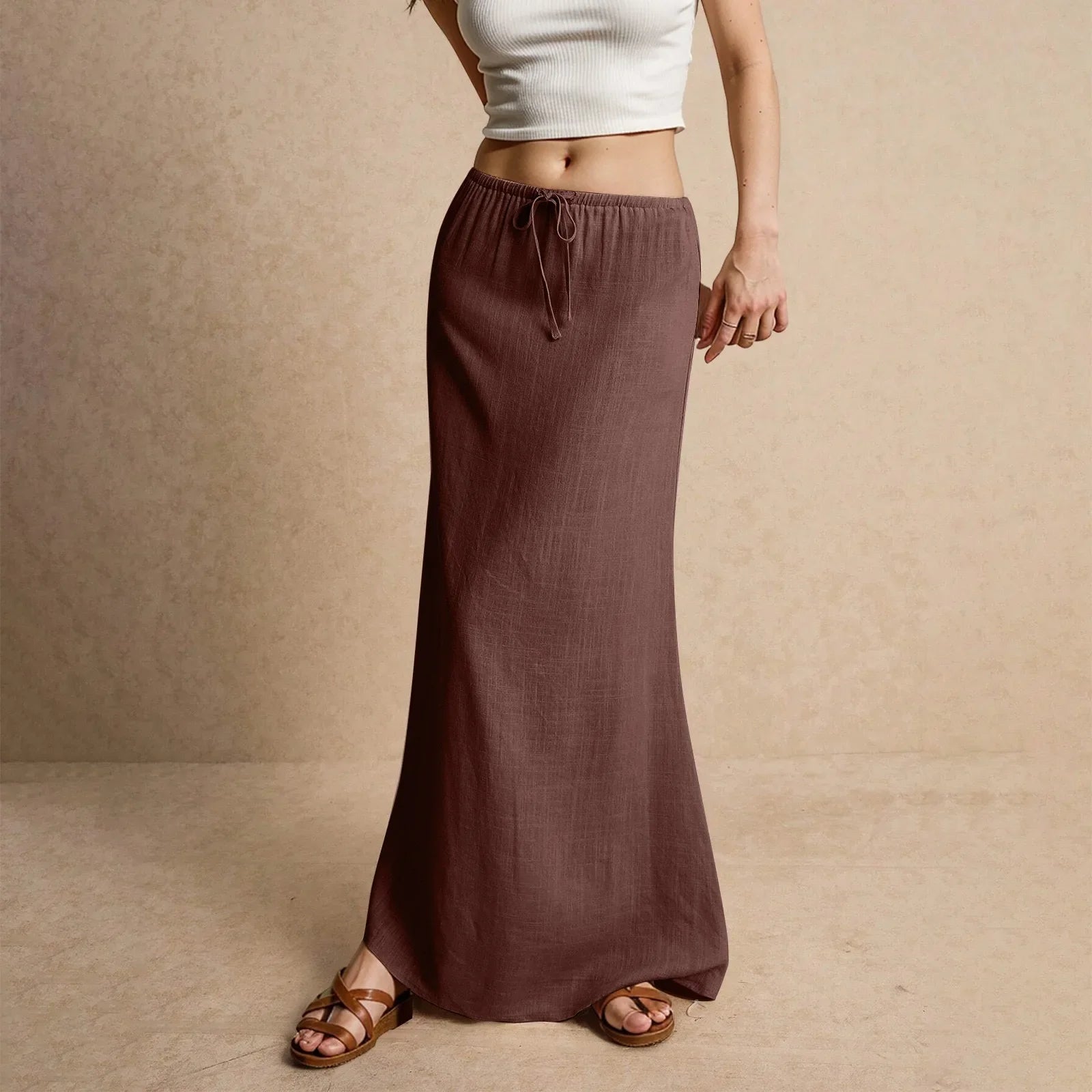 Women Maxi Skirt With Drawstring Waist And Flowing Silhouette