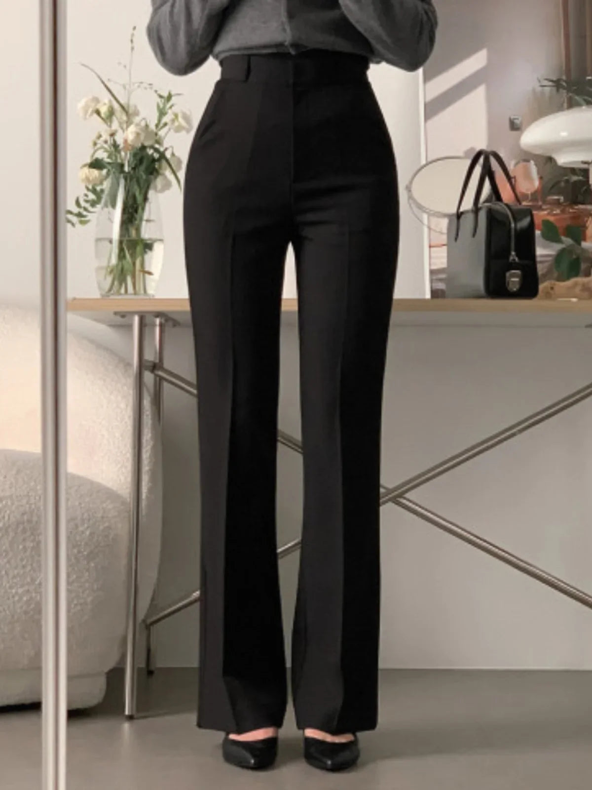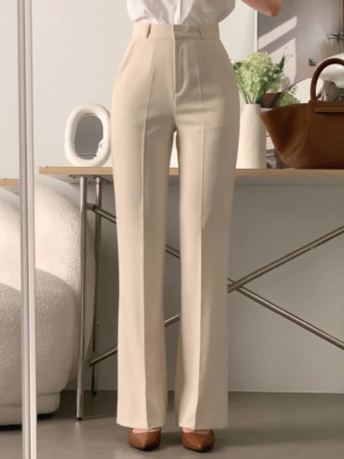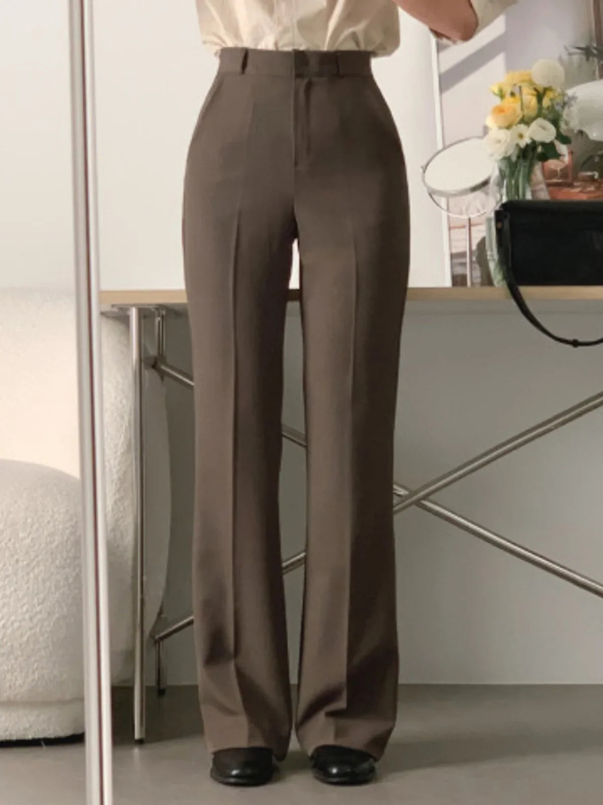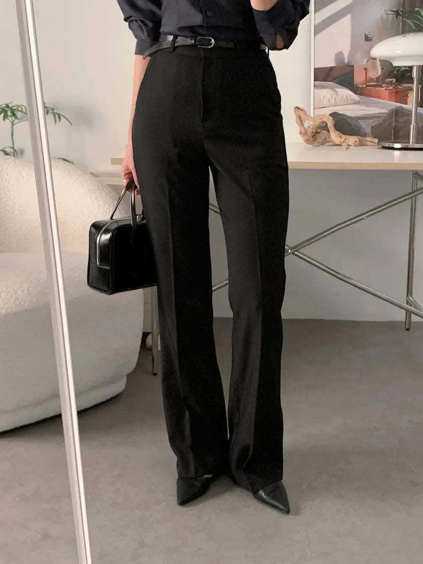 These women’s wide leg pants are designed with a high waist and a flowing leg shape that supports a clean, modern silhouette. The structured waistband provides a defined fit at the waist, while the wide leg cut allows natural drape through the length of the trousers. This design is suitable for daily wear, office settings, or relaxed occasions, offering flexibility in styling without added detailing. The overall construction focuses on proportion, movement, and simplicity, making the pants adaptable across different outfits and settings.