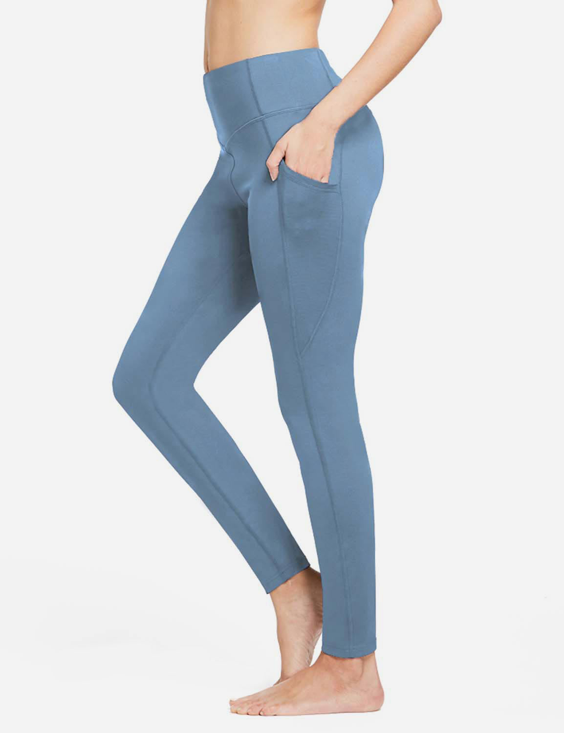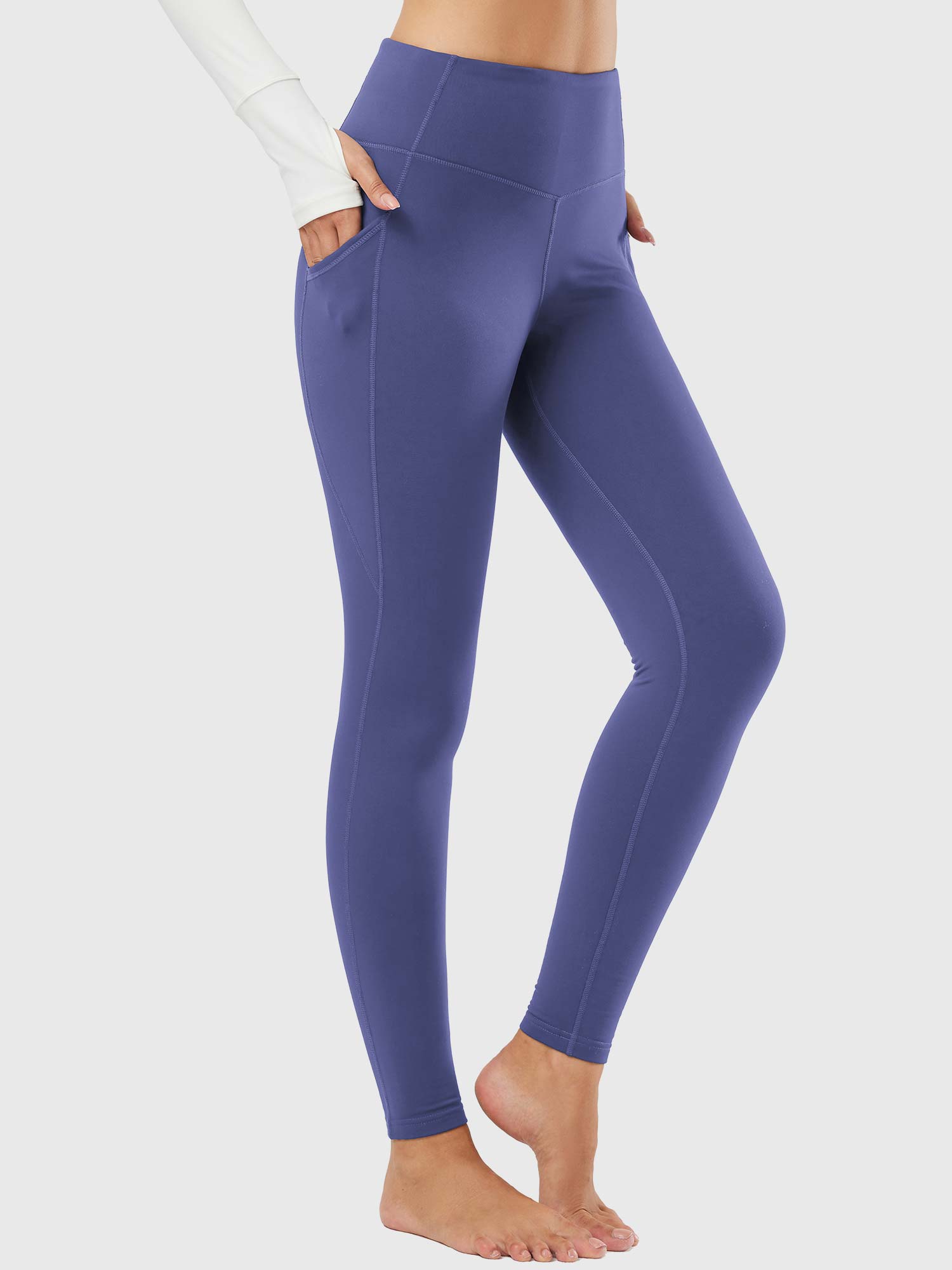 These women’s thermal leggings provide warmth with a brushed fleece lining while maintaining a contoured fit for active movement. The high-rise design and wide waistband with inner drawstring ensure a secure fit, while flatlock seams reduce chafing. Three functional pockets, including a hidden waistband pocket, offer storage for essentials, making them suitable for activities like yoga, running, hiking, cycling, and winter sports.